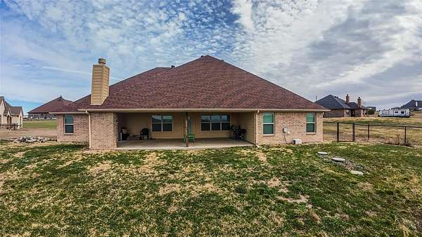 Exquisite 4 bed 2.5 bath custom dream home on over 2 acres in desirable Sky View Ranch Estates. Nestled on a quite cul-de-sac, this property offers a flexible and functional layout designed for modern living. The home features a formal dining room, light filled living area with fire place, and a well-appointed kitchen with generous counter space, knotty wood cabinets, and granite countertops. A versatile flex room provides perfect space for a home office, playroom, workout room, or additional living area. Huge primary bedroom with bathroom suite attached that boasts his and her sinks, walk-in shower, garden tub, and walk-in closet that is connected to the laundry room. Oversized guest rooms with walk-in closets. Home has tile floors throughout living areas, kitchen, and bathrooms, with plush carpet in bedrooms. Home also has a 3 car garage with water filtration system and a 240 volt plug if needed. Entertain guest with spacious covered back porch and fireplace. Any animals welcomed, with secure top rail fencing, or enjoy your gigantic backyard with more than enough room for playtime. Save money with no City Tax! Water provided through well, no water bill! You will not be disappointed with the sunset views in the evenings! Home is move-in ready! Schedule your showing now, won't last on the market!