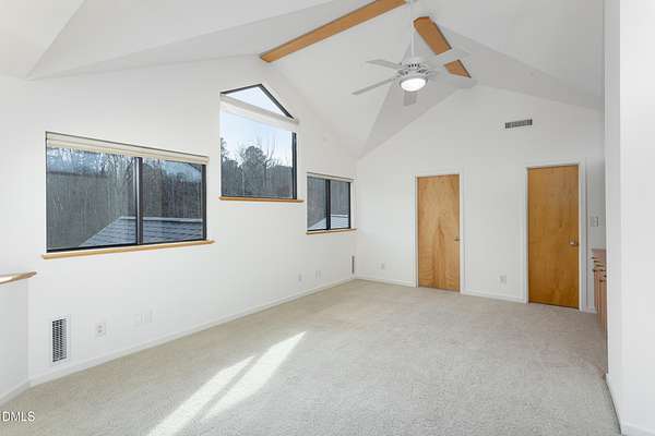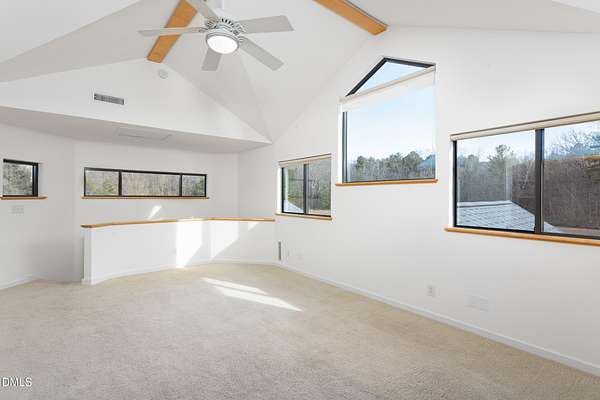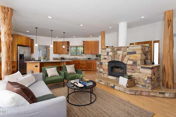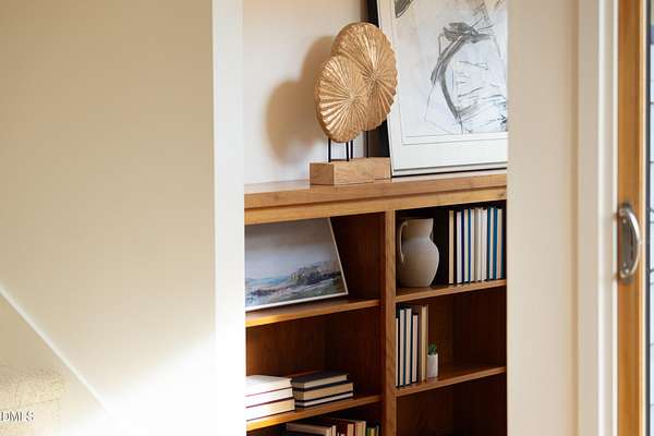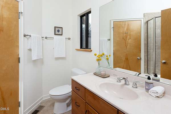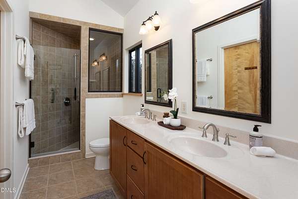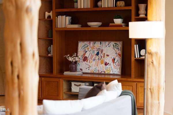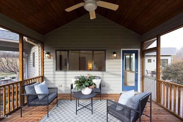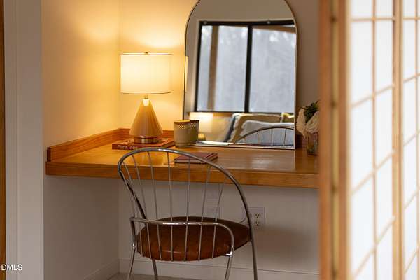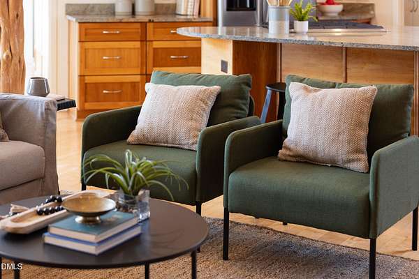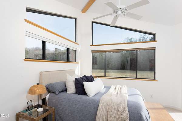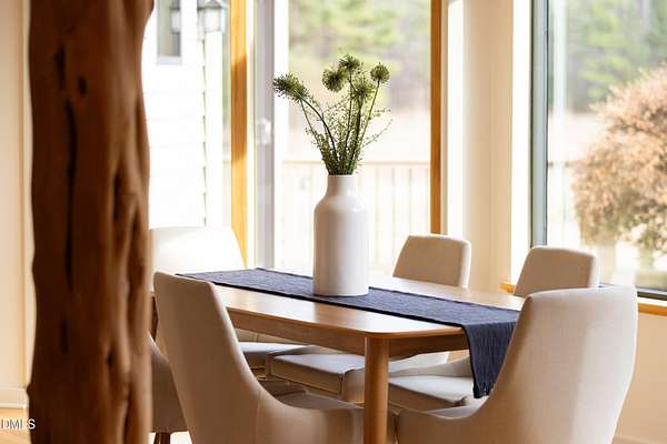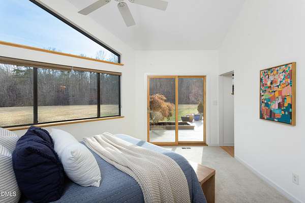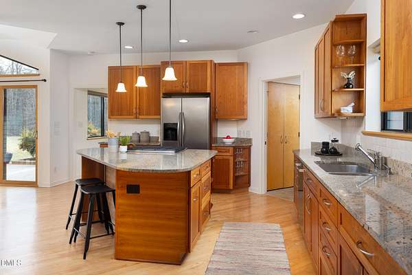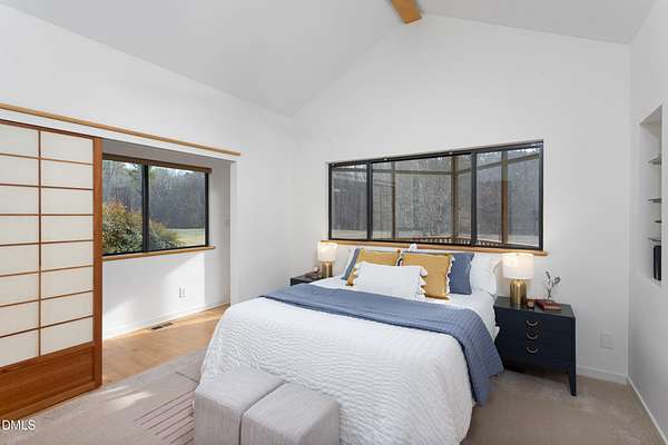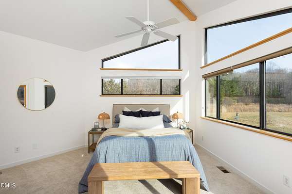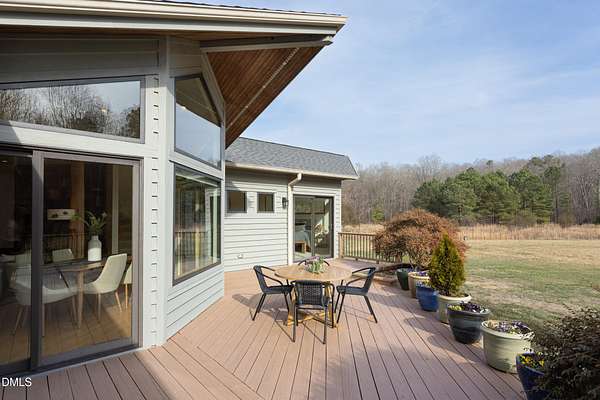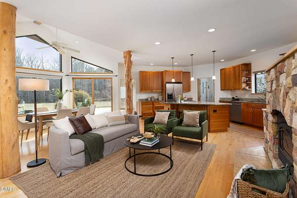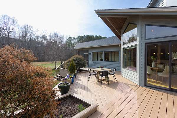 Beauty and nature as you've never experienced it before. 1009 Starfield offers a peaceful and serene sense of space where you instantly feel at home. Custom built by renowned architect & builder John Hartley in 2006, 1009 Starfield features natural stone, live edge timber and expansive views bringing natural light, warmth and texture to every room. By bringing the beauty of the landscape's natural materials in, he ensured that the interior and exterior of the home were one. Take in the views of the grassy meadow and the blue birds swooping and nesting in the yard or take a stroll to the stream and trail on the property. Designed for easy living with an open floor plan, both the primary bedroom and second bedroom are on the main floor, as well as the screened in porch, huge deck overlooking the backyard, and the 2-car garage. Keeping green practices in mind, solar power is harnessed from solar panels for daily use as well as stored in a powerwall to be used in the event of a grid outage. With 4 acres in a lovely circular neighborhood with a labyrinth (yes, a real labyrinth!), you get the feeling you are away from it all yet you're only minutes from Chapel Hill, Hillsborough, and Durham.