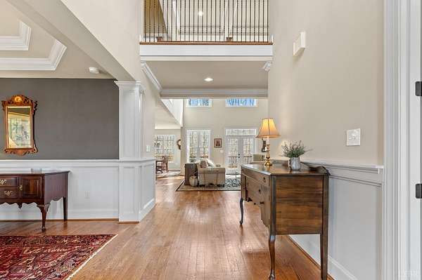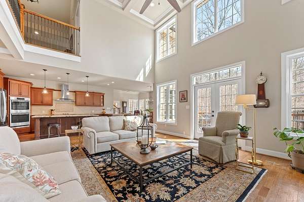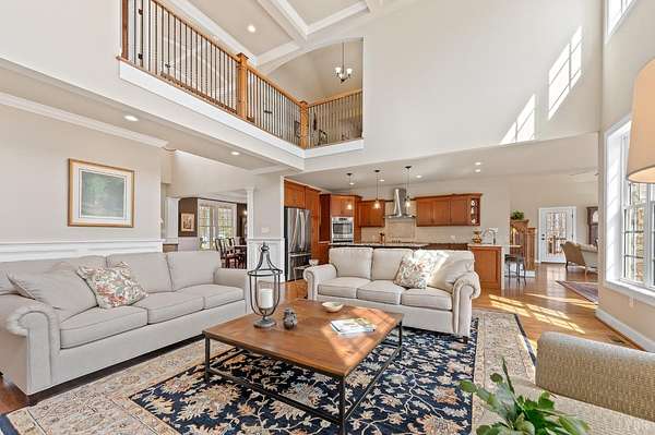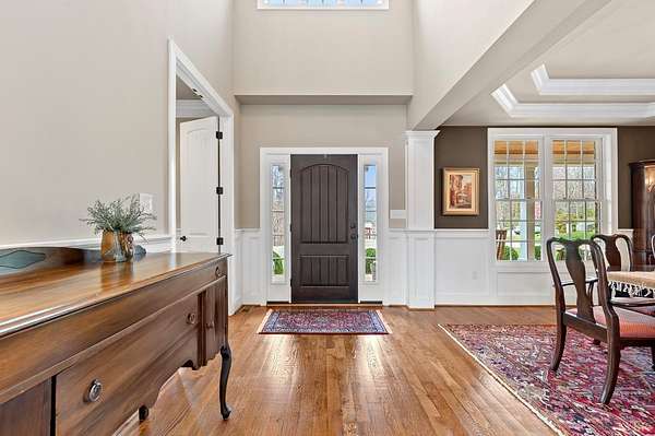 Custom Built one owner home is perfection and truly a must-see property. Beautifully designed for entertaining and everyday living with open floor plan, 4 outdoor porches, paved patio with firepit, oversized heated 3 car garage, hot tub, 2.78 private lot with lake frontage, wine cellar, specialty crafted high ceilings, lots of natural light, loads of storage/unfinished space & workshop. Drop zone, main level laundry, office with built-ins (could be a bedroom), great room w/ built ins, gourmet kitchen w/7 ft island plus breakfast area, dining room 1/2 bath and den/keeping room leading to covered patio. Main level primary bedroom with lavish bath, walk-in tile shower, his/her closets, access to deck. Upstairs bonus room plus 3 additional bedrooms, sitting area, 2 full baths, walk-in attic. Terrace level with finished den, wine cellar, bath and unfinished space with endless possibilities! Hardwood floors throughout main level. This home has it all. Main level living & space for everyone