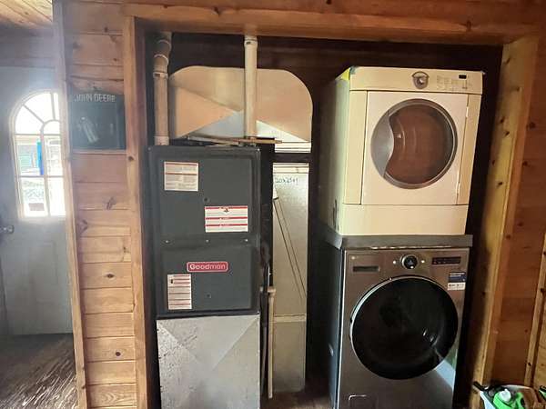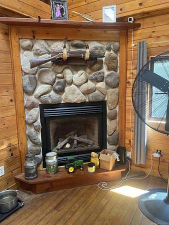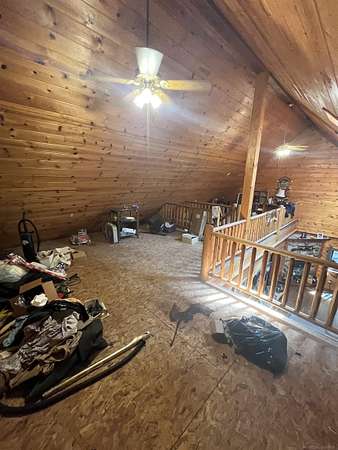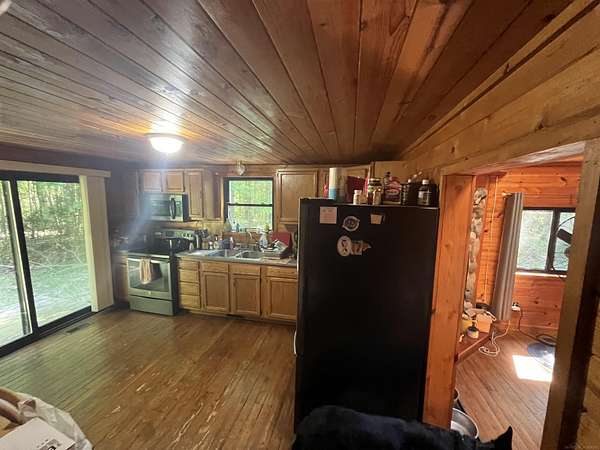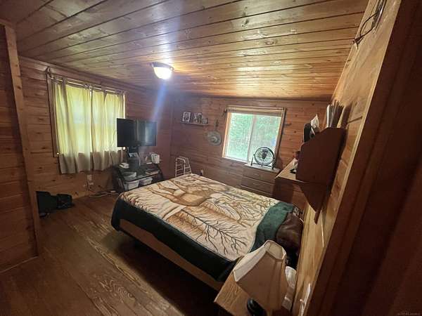Tucked deep within a forested landscape, this inviting woodland hideaway sits on 15 acres of untouched Northern Michigan beauty. Designed with rustic character and timeless craftsmanship, this 1,650 square foot log-style residence blends effortlessly into its natural surroundings. Inside, a warm wood interior and soaring ceilings create an inviting atmosphere, with a spacious open layout and a full-length loft that adds flexible space for guests, hobbies, or quiet reflection. Two comfortable bedrooms and a well-appointed full bath offer simple functionality on the main level, while the expansive covered front porch becomes your daily front-row seat to the sounds of birdsong and wind through the trees. Enjoy a bonus loft that is perfect for a hangout space, office or play area. A large 32x40 detached garage offers room for all your outdoor gear, equipment, and more. Here, you'll find more than just a home--you'll find breathing room, solitude, and connection to the natural world.
