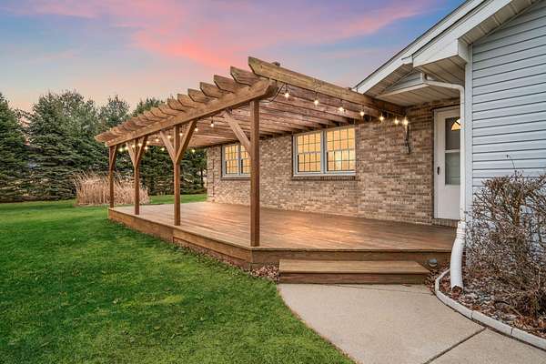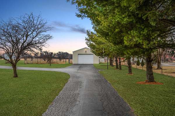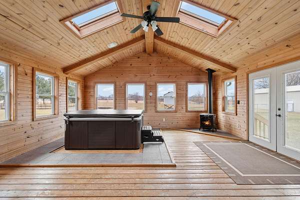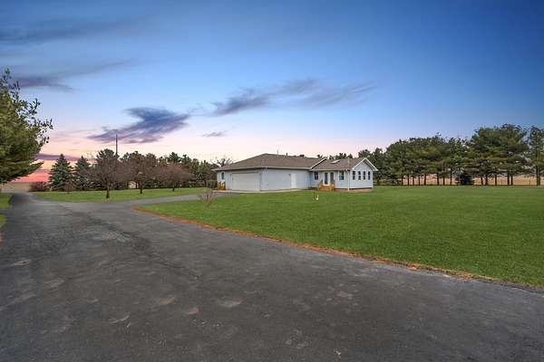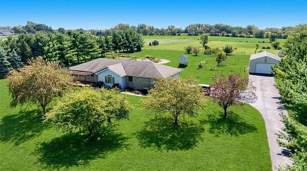 Welcome to your private country retreat on 5.65 beautiful acres, yet just minutes from town! This spacious 4-bedroom, 2.5-bath home with over 2,500 sq ft offers the perfect blend of comfort, space, and rural living. Inside, you'll love the open-concept layout with high ceilings and a large eat-in kitchen; featuring classic oak cabinets and nearly new stainless steel appliances. The home has been freshly professionally painted and features brand new carpeting, giving it a clean, move-in-ready feel throughout. Relax year-round in the heated four-seasons room with hot tub, overlooking the peaceful property and mature fruit trees. The home also features a large unfinished basement ready for your finishing touches and a 2-car attached garage. The 4th bedroom has access to the outside for use as a possible office, plus main floor laundry. Outside, the property is ideal for hobby farmers or horse lovers with a pole barn, open acreage, and horses allowed. Enjoy the privacy of a country setting while benefiting from the convenience of natural gas service--a rare find for rural properties. Major updates include a newer roof, newer front deck with pergola, and updated AC and furnace, giving peace of mind for years to come. If you're looking for space, privacy, and the ability to enjoy country living with modern comforts, this property is a must-see!