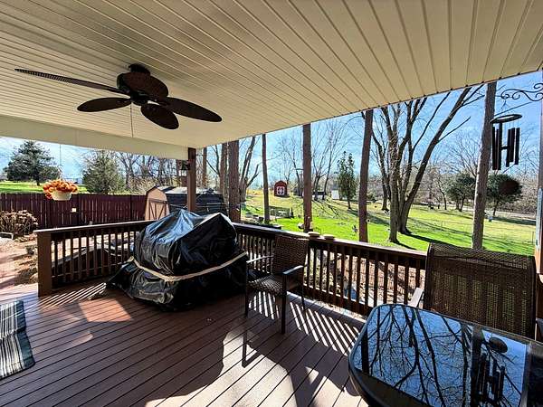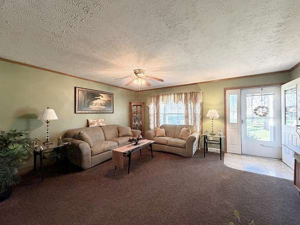Welcome to this beautiful country home on two acres in Unity Point! Four bedrooms, 2 bath home with two fenced yards, lofted pole barn, two sheds, deck, and tranquil rural views. Just 10 mins from SIU. This split floor plan home with two main bedrooms (each with private full baths) features a fantastic layout: open living area from kitchen to family room with cozy corner stone fireplace, space for home office, computer area, and breakfast bar on large kitchen island. This clean, well-maintained 2005 Carefree NU Hart manufactured home is perfect for guests, multi-generational living, or added privacy. Additional features include mudroom for easy clean ups and extra storage, attached two car garage with remote, bay window, covered deck, and built in holiday lights for year round decorating. Step into the backyard and enjoy two fully fenced areas - perfect for pets, play and relaxed evenings. Property includes a 20x50 pole barn with 14' door (20 peaked roof) with loft and electrical. High speed with fiber via Frontier. Toro 50" ZTR riding mower (about five years old) negotiable. Enjoy country living with town convenience nearby in Unity Point School District. See this home before it's too late!