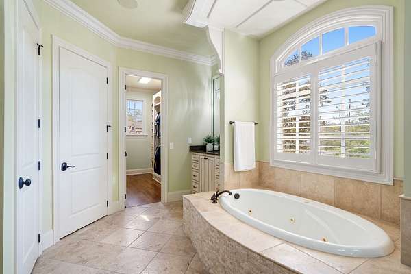 The main-level primary suite serves as a true private retreat, complete with spa-inspired amenities, while each additional bedroom includes its own ensuite bath, offering comfort and privacy for family and guests alike.