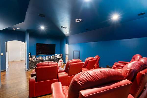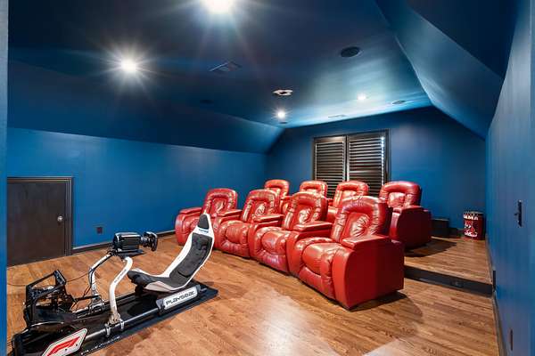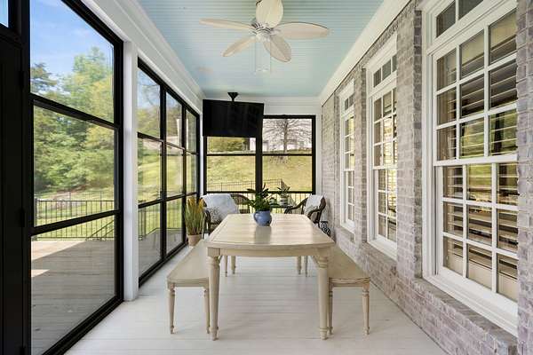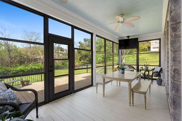 Designed with entertaining in mind, the home showcases a dedicated theatre room with wet bar, a chef’s kitchen appointed with commercial-grade appliances, a wine room with custom storage, multiple fireplaces, and a screened porch that flows seamlessly to an extended deck, ideal for year-round enjoyment.