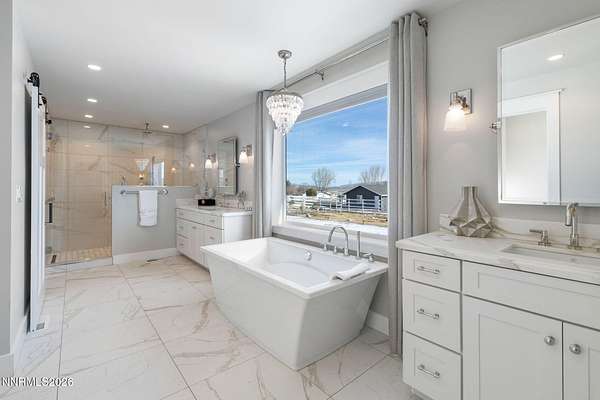 Experience luxury country living in this fully remodeled ranch-style home located along historic Old US Hwy 395, offering exceptional privacy while remaining just minutes from local amenities. Set on 2.7 acres of usable land with open pastures, this property blends peaceful rural living with modern convenience. The 2,359 sq ft single-level home features three bedrooms and two full and one half beautifully updated baths, designed with an open, inviting layout ideal for both everyday comfort and entertaining. Expansive windows throughout flood the home with natural light and frame breathtaking views, creating a seamless connection between indoor and outdoor living. Outside, the property is equally impressive. A drive-through barn provides excellent functionality for livestock, equipment, or storage, while a separate unfinished garage includes additional attached space with endless potential-perfect for converting into additional living quarters, a guest suite, workshop, or full stable. For added peace of mind, the home is equipped with a backup generator, ensuring comfort and reliability year-round. With room to roam, modern upgrades throughout, and unmatched versatility, this exceptional property offers the best of private, upscale country living-all within close proximity to shopping, dining, and services. A truly rare opportunity - come see for yourself!