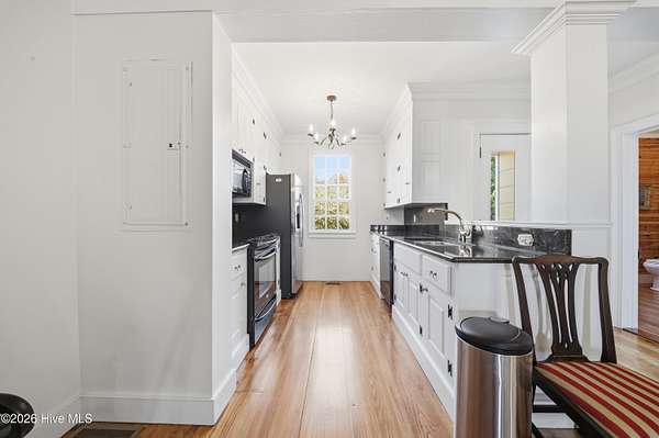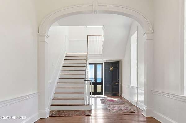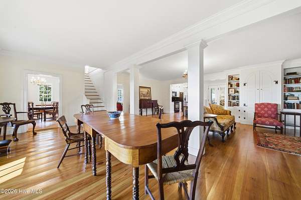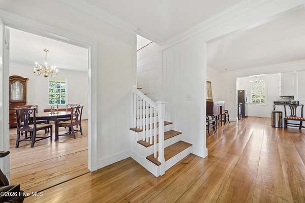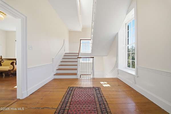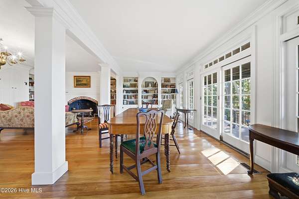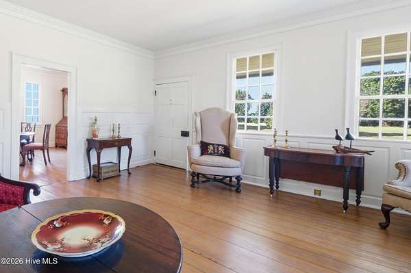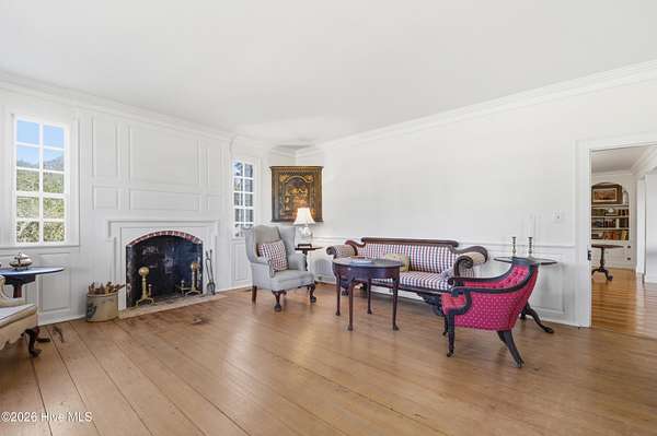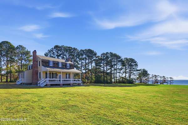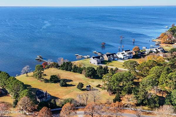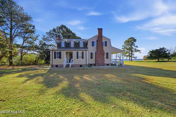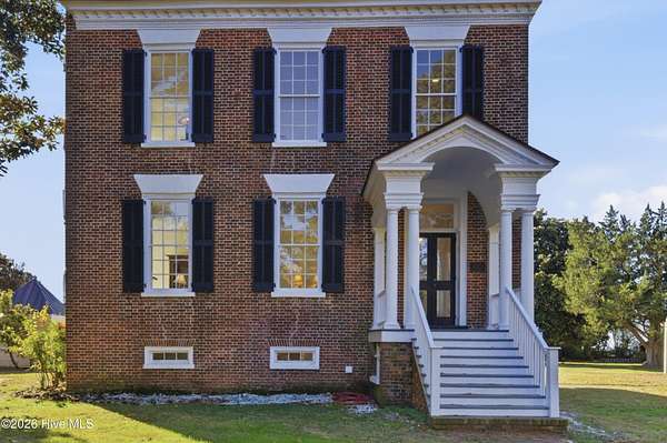 Gracefully positioned along the quiet shores of the Albemarle Sound, Mulberry Hill Plantation is one of the Albemarle region's most captivating historic estates--an enduring symbol of early American architecture and coastal Carolina heritage. Constructed around 1810 for the Blount family, Mulberry Hill reflects the refined tastes of the early American republic. Its stately brick facade--laid in classic Flemish bond--reveals a balanced three-bay composition and traditional side-hall plan, a design more commonly found in the great coastal homes of the period. Inside, graceful proportions, finely detailed woodwork, and historic craftsmanship evoke an era when architecture was both art and legacy. Tall windows frame sweeping views of the surrounding countryside and the broad expanse of the Albemarle Sound, where shifting light across the water lends a sense of tranquility that has defined this landscape for centuries. Each of the home's principal rooms and bedrooms is anchored by its own fireplace, a hallmark of early nineteenth-century design that lends warmth, intimacy, and architectural rhythm throughout the home. Recent updates include a new roof, HVAC systems, and beautifully renovated kitchen and bathrooms - ensuring the comforts of contemporary living while preserving the home's historic character and architectural integrity. Approached through tranquil countryside, flanked by an 18-hole golf course, and framed by mature trees, the estate conveys an immediate sense of arrival. Mulberry Hill's setting feels timeless--where open land, expansive skies, and the gentle rhythms of rural eastern North Carolina create a rare sense of privacy and permanence. The grounds--once part of a much larger colonial plantation--retain the pastoral character that has shaped the Albemarle region since the earliest days of settlement. Owned by the Wood family for generations, their stewardship legacy speaks to the enduring significance of the home and deep ties between the family and Edenton Community. Listed on the National Register of Historic Places, Mulberry Hill represents an important architectural landmark within Chowan County's historic landscape. Today, the property offers a remarkable opportunity to steward a piece of North Carolina history while enjoying the tranquility of one of the state's most charming coastal regions. Just minutes from the waterfront streets, colonial architecture, and vibrant cultural life of Edenton, the estate combines historic distinction with waterfront serenity and proximity to one of the South's most charming historic towns. Mulberry Hill Plantation is more than a residence--it is a living chapter of the Albemarle region's past, where nearly two centuries of history, craftsmanship, and Southern character converge along the timeless shores of the Albemarle Sound.