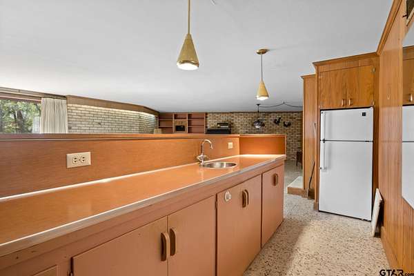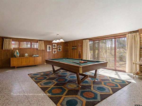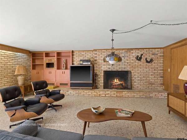 Step into your mid-century modern dream! Beautifully situated on a 3.3 acre corner lot in one of the area’s most sought after neighborhoods, this split-level home blends timeless charm with spacious, functional living. The main level welcomes you with a generous formal living room anchored by a stunning fireplace, perfect for gathering and relaxing. On this level, you’ll also find three well appointed bedrooms and two of the three bathrooms, all conveniently located for easy everyday living and a gorgeous sunroom lined with windows allowing ample natural light, ideal for sipping your morning coffee while enjoying the views. Downstairs is an entertainer's dream. Complete with a full wet bar, an additional fireplace, a full bathroom, and a patio off the back, this space is perfect for hosting parties, hanging with friends, or slipping off to your own private retreat. You’ll appreciate the retro charm of terrazzo tile floors throughout the home, abundant built-in storage, and classic mid-century details that make this property truly special. Additional features include a two car garage and a separate workshop, ideal for hobbies, projects, or extra storage. A rare opportunity to own a one-of-a-kind property with character, space, and style! Don’t miss it!