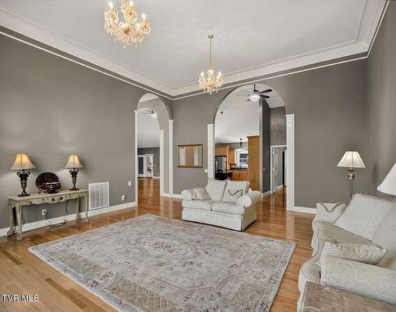 Welcome to an exceptional private estate at 101 Bond Town Rd in Blountville, Tennessee, offering over 8,000 square feet of beautifully designed living space on a meticulously maintained property in the heart of the Tri-Cities region. Ideally located just minutes from Tri-Cities Airport and conveniently positioned between Johnson City, Kingsport, and Bristol, this remarkable residence provides both privacy and accessibility - an ideal combination for executive buyers, relocation clients, and those seeking an elevated lifestyle in Northeast Tennessee. The home has been carefully maintained and reflects true pride of ownership, with immaculate interiors and beautifully kept outdoor spaces. Surrounded by the natural beauty of East Tennessee, the property is within easy reach of the area's most scenic lakes, mountains, and outdoor recreation, making it perfect for those who appreciate both luxury living and an active lifestyle. Inside, the home welcomes you with an impressive entry highlighted by elegant chandeliers, rich hardwood flooring, soaring ceilings, and expansive windows that fill the home with natural light. The thoughtfully designed floor plan creates a natural flow between the gourmet kitchen, living areas, and formal dining spaces, making the home equally suited for entertaining or comfortable everyday living. The main level features a private primary suite retreat, complete with an adjoining office or nursery, a spa-inspired bathroom with heated floors, and generous closet space. Two additional bedrooms each offer their own en-suite baths with heated flooring, providing comfort and privacy for family or guests. A climate-controlled sun-room offers a relaxing space to enjoy throughout the year, while outside, the property transforms into a private resort setting. The Viking fiberglass pool, resurfaced deck, and outdoor bath area create the perfect environment for gatherings, relaxation, or entertaining. The finished lower level adds tremendous versatility and is ideal for multi-generational living or guest accommodations, featuring a spacious entertainment area with marble and tile flooring, kitchenette, full bath, built-in vault, and extensive storage. A lower-level garage provides convenient private access for guests or extended family. This residence also offers impressive construction quality and modern mechanical systems, including concrete construction with foam insulation, a heated and cooled three-car garage with ceramic tile floors. Additional Highlights: Built-in dehumidifier, heat pump (2 years old), and one water heater (3 years old) There is a 1,000 lb. propane tank which is leased with automatic backup heat system, ensuring both comfort and efficiency. Located in Northeast Tennessee, one of the most desirable relocation destinations in the country, the property also benefits from Tennessee's no state income tax, adding long-term financial appeal to its lifestyle advantages. For frequent travelers, the proximity to Tri-Cities Airport, which supports executive and private aviation services, offers exceptional convenience for business or leisure travel. This extraordinary property combines quality construction, privacy, convenience, and timeless design--creating a rare opportunity to own a premier estate in the Tri-Cities area. Select furnishings and artwork may also be available, providing an opportunity for a luxury estate purchase.