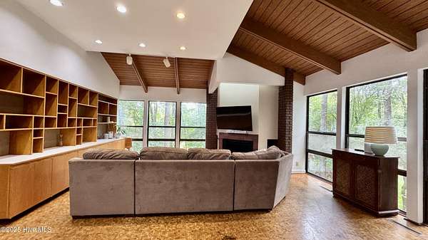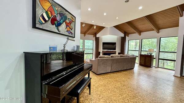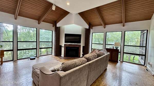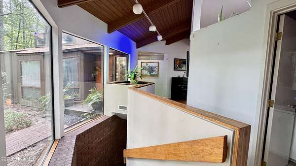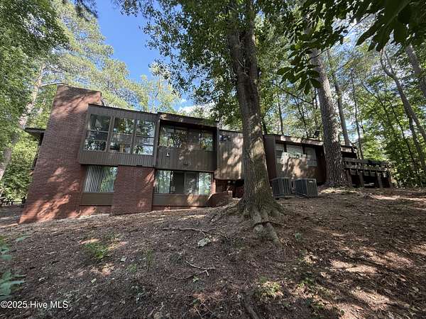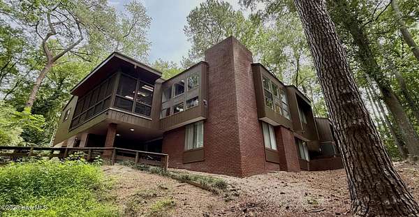 A Rare Mid-Century Modern Masterpiece Step into a work of art. Designed by architect Nelson Benzing and featured in Mid-Century Modern Magazine in the 1970s, this one-of-a-kind residence is a true architectural treasure in Goldsboro's coveted Pill Hill community. With its Frank Lloyd Wright-inspired organic design, this home blends seamlessly into its wooded 3.43+/- acre setting, offering both privacy and proximity to the best of Eastern North Carolina. The home's 3,466 sq. ft. of living space showcases every hallmark of mid-century modern design: flat rooflines, clerestory windows, exposed beams, skylights, and original woodwork. A dramatic wall of glass frames the treetops, filling the expansive living room-complete with custom built-ins and a fireplace-with natural light. Throughout the home, preserved details delight the design enthusiast: parquet floors, indoor planters, and a retro kitchen with original metal cabinetry. With 4 bedrooms and 3.5 baths, the home balances artistry with function. The primary suite opens to a private deck overlooking the landscape, while the large screened porch-perfectly positioned to catch the morning sunrise-offers a serene place for entertaining or reflection. Brick walkways leading to the front door, a roundabout driveway welcomes guests, and a double carport sits tucked beneath the home's structure. Located minutes from Downtown Goldsboro, Seymour Johnson AFB, shopping, dining, and parks, and less than an hour from Raleigh or Greenville, this home is both secluded and central. Rarely does a property of this architectural caliber come to market in Eastern North Carolina. For the collector, the design enthusiast, or anyone who longs to entertain in a retro-modern retreat, 101 Cashwell Drive is a once-in-a-generation opportunity.
