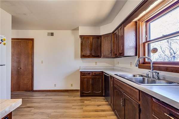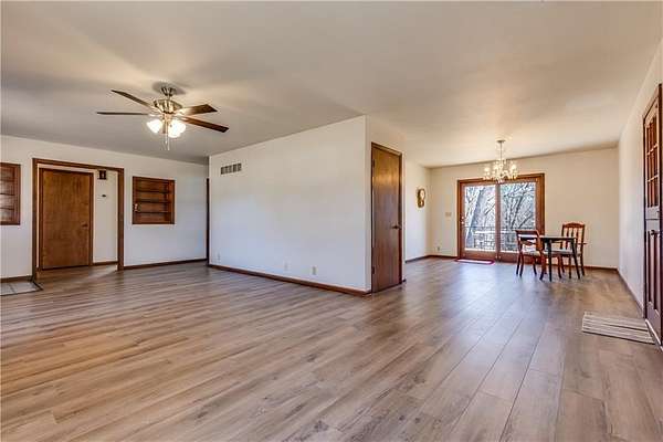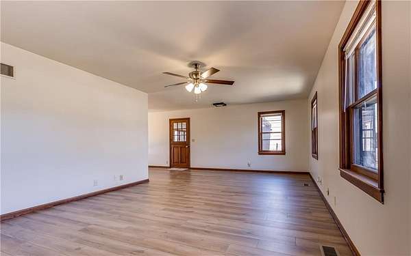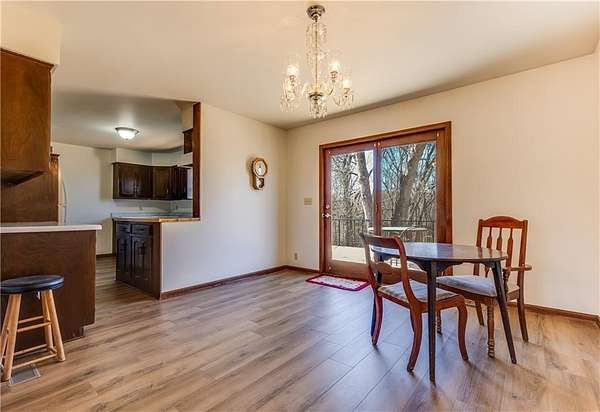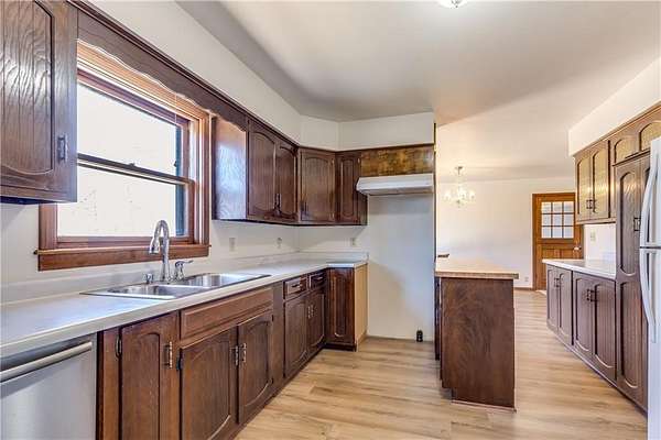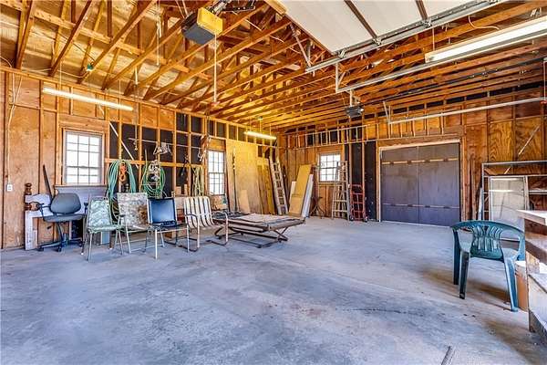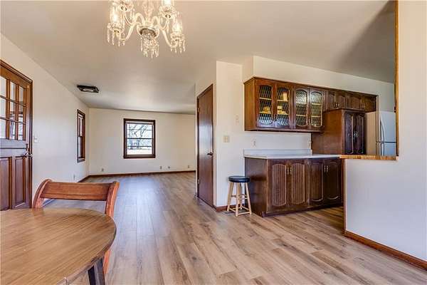 One-owner ranch-style home offering space, privacy, and move-in-ready comfort. Settled on 3 acres right on the edge of town. Featuring 4 bedrooms and 2 full bathrooms, the layout is functional and inviting with new flooring throughout the main living areas and eye-catching chandeliers that add a touch of character. The home includes a full walk-out basement, a sunroom filled with natural light, and a walk-out patio that leads to a large deck that offers privacy and seclusion - perfect for relaxing or entertaining. Mature shade trees surround the property, with a wooded area behind the home providing a beautiful backdrop. You'll also appreciate the abundant storage and workspace options with both a 2-car attached garage and a detached 3-car garage with concrete floors. Conveniently located close to 69 highway. This property combines country feel with town convenience. This well-maintained home is in great condition - ready for its next owner to move right in.
