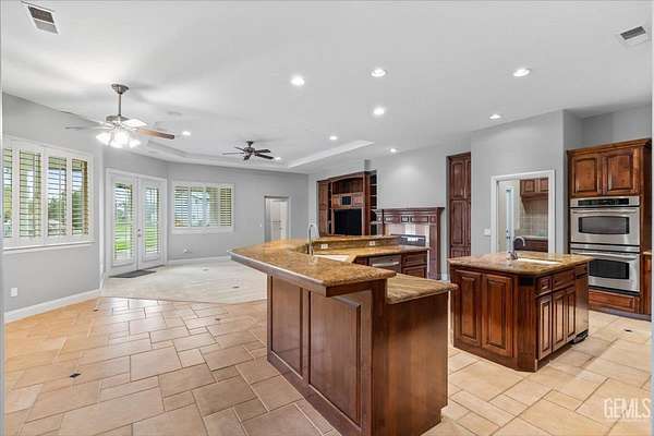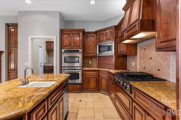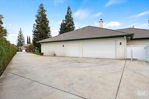 Stunning Luxury Estate! 4 bd - 4 bth home w/ 4,817 sqft, separate 2 bd - 1 bth guest house & 3,000 sqft shop w/ owned solar, built on 1.73 acres. The grand double-door entry opens to a marble-floored foyer w/ soaring ceilings & a split-wing layout. Spacious formal living & dining rooms w/ coffered ceilings and crown molding, perfect for elegant entertaining. The gourmet kitchen delights w/ granite countertops, Sub-Zero appliances, Decor six-burner stove, double ovens, large island w/ sink & bar seating for ten.Relax in the family room by the marble fireplace or retreat to the luxurious primary suite w/ two-way fireplace, spa bath, jetted tub, double shower, & expansive walk-in closet. Large guest bedrooms, Jack-and-Jill bath, and large home office. Resort-style backyard w/ pool & rock waterfall, mature landscaping, 3,000-square-foot insulated shop with office, mezzanine gym, engine-build room, oversized roll-up doors & RV parking complete this rare estate.