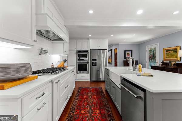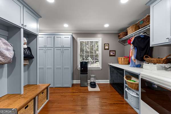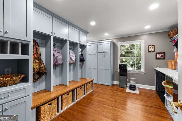 Nestled on a private 2.39-acre lot, this beautifully maintained home offers the perfect combination of classic charm, modern updates, and peaceful surroundings. With four spacious bedrooms and three full baths-including two bedrooms on the main level-the versatile floor plan is designed to fit a variety of lifestyles. Hardwood floors flow through the main living areas, while the stunning, updated kitchen is truly the heart of the home. Features include quartz countertops, a gas cooktop, double ovens, a pot filler, and a butler's pantry that opens to an oversized custom mudroom with exceptional storage and functionality. The living room showcases neutral finishes and a gas log fireplace. Upstairs, two additional bedrooms provide oversized closets and flexible space perfect for guests, hobbies, or a home office. Outdoor living is just as impressive, with both a welcoming front porch and a screened back porch ideal for relaxing or entertaining. The terraced backyard is beautifully landscaped, featuring a dedicated garden area and the privacy of a serene natural setting. Additional highlights include a two-car garage with extra storage and a basement that offers endless possibilities for a home gym, workshop, or future expansion. Located in the sought-after Hollis Hand School District, this property is a rare opportunity to enjoy space, privacy, and thoughtful upgrades in an exceptional setting.