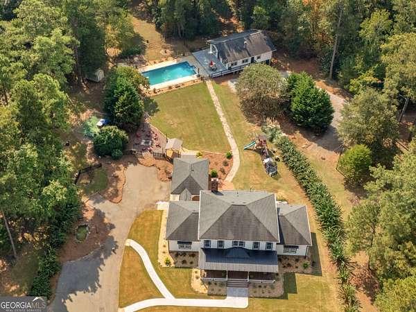 Discover the epitome of luxurious estate living in this breathtaking home, nestled on over 15 pristine acres of meticulously maintained grounds. Built for comfort and peace of mind, this residence features a state-of-the-art whole house generator to ensure your tranquility through any storm. Inside the main home, you'll find an impeccably kept interior where craftsmanship and attention to detail reflect a level of quality rarely replicated in today's builds. Custom live-edge wood countertops add warmth and character to the elegant kitchen, complemented by freshly painted walls. The expansive, open-concept living areas are bathed in natural light, creating a seamless blend of comfort and sophistication. Ample storage options include spacious closets, built-in cabinetry, and a 24x30 shed with lean-tos on each side-perfect for hobbies, equipment, or future projects. The thoughtfully designed layout features a formal dining room ideal for memorable gatherings, and upstairs, five bedrooms-including a versatile space perfect for a nursery or office. Step outside to your private paradise, where an inviting inground pool provides the perfect retreat for cooling off on warm days or relaxing under the stars. Adjacent to the pool, a charming pool house offers a cozy space for relaxation or entertaining. This 3-bedroom, 2-bath pool house includes separate utilities and can serve as an in-law suite, a getaway for teens, or generate rental income. Also on site, a fully fenced pasture provides ample space for farm animals-ideal for those who wish to embrace a hobby farm lifestyle or simply enjoy the beauty of open land and a pottery barn for all your man-cave or she shed dreams. Whether unwinding by the firepit, hosting unforgettable gatherings, or enjoying the expansive outdoor space, this estate offers an unparalleled combination of enduring quality, beauty, functionality, and warmth-a true sanctuary to call home for generations to come.