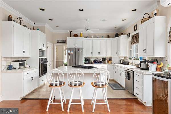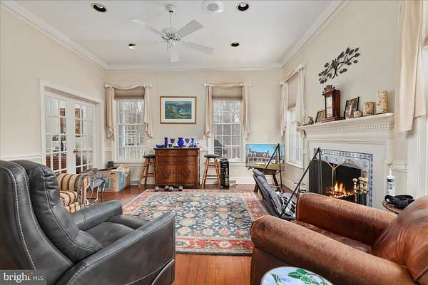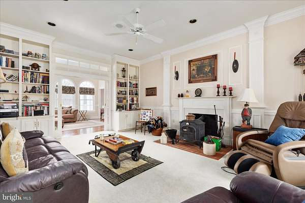 - Additional Stairway, Attic, Breakfast Area, Built-Ins, Carpet, Ceiling Fan(s), Chair Railings, Combination Kitchen/Living, Crown Moldings, Curved Staircase, Dining Area, Eat-In Kitchen, Entry Level Bedroom, Family Room Off Kitchen, Formal/Separate Dining Room, Island Kitchen, Jetted Tub Bathroom, Pantry, Primary Bath(s), Recessed Lighting, Sound System, Spiral Staircase, Table Space Kitchen, Traditional Floor Plan, Tub Shower Bathroom, Upgraded Countertops, Walk-In Closet(s), Walk-In Shower Bathroom, Water Treat System, Wood Floors, Wood Stove