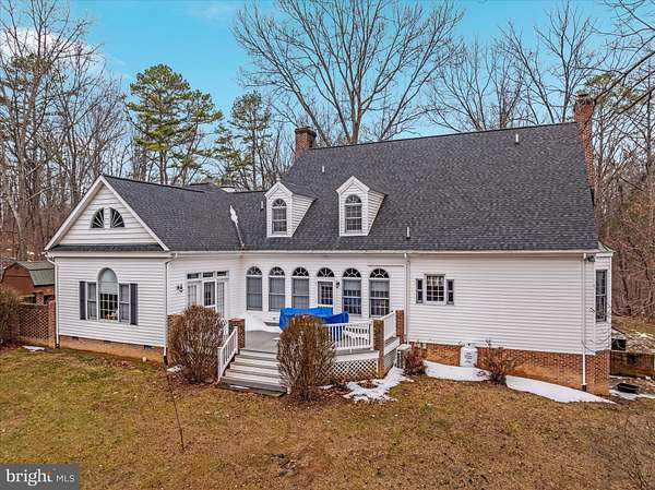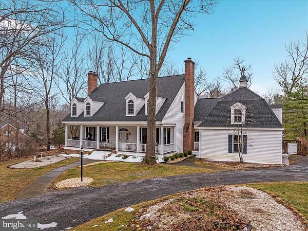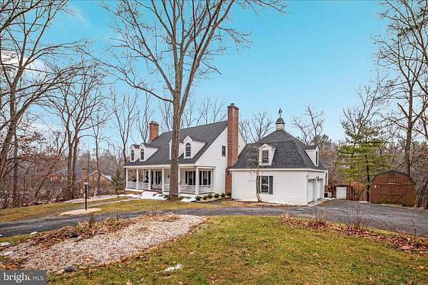 Cape Cod charm inspired by "The Natchez" Southern home plan! Located in the sought-after Spring Hollow Estates subdivision, this stunning 4-bedroom, 3.5-bath home offers over 4,300 square feet of beautifully finished living space. From the moment you arrive, the circular driveway, stately brick and columned front porch, and welcoming foyer with a grand stairwell set the tone. Thoughtful architectural details shine throughout, including elegant pocket doors and beautiful transom windows that add character and natural light. The main level features a spacious primary suite with tray ceiling, French doors leading to the rear Trex deck, a private garden retreat, and an ensuite bath with jacuzzi tub and walk-in shower. Designed for both everyday living and entertaining, the main level also includes a separate dining room, living room, library, sun/Florida room, half bath, and laundry room. The kitchen is a standout with white cabinetry, black hardware, stainless steel appliances, pantry, gas cooktop, and a center island perfect for gathering. Built-ins throughout, surround sound on the main level, two wood-burning fireplaces(one being used with a cozy woodstove) create warmth and charm in every corner. Upstairs offers three additional bedrooms plus a stunning balcony that overlooks the sun/Florida room below-adding an open, airy feel and striking architectural interest. A curved staircase from the dining room leads you down to the unfinished basement and storage areas. A separate stairwell off the garage takes you to a spacious recreation room above the 2-car garage-complete with a built-in desk, making it ideal for a home office, studio, or bonus space. Outdoor living shines with a Trex deck featuring vinyl railing and brick posts with steps to the backyard, plus two storage sheds for added convenience. This home beautifully blends timeless Southern elegance with thoughtful upgrades, architectural detail, and abundant storage throughout.