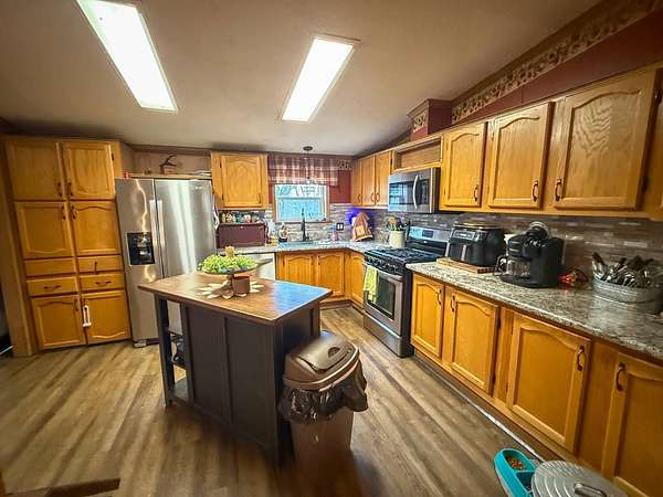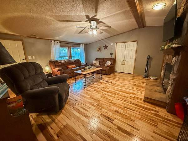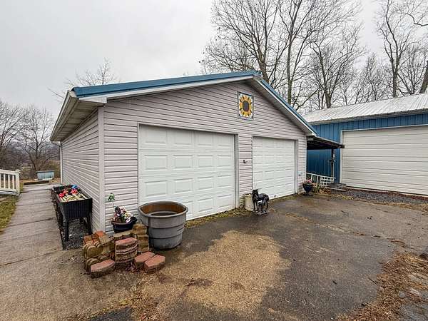 If you've been dreaming of space to spread out and start your own homestead, this is it! Situated on 5.73 acres, this spacious 3 bedroom, 3 bathroom home offers room to grow both inside and out. The property is already set up for country living with much of the acreage fenced for animals, a small pond, a chicken coop in place, and a large separate barn storage area ready for equipment, hay, or hobbies. Two detached garages provide plenty of room for vehicles, tools, ATVs, or a workshop setup. Enjoy the bonus of FREE GAS, along with city water and private septic. The home features beautiful hardwood flooring throughout, an open kitchen, laundry area, large living room, fireplace, and room to spread out. Located less than 5 minutes to Burnsville Lake, Bulltown, and BORDERS the WMA, you'll have easy access to boating, hunting, fishing, and miles of outdoor recreation. Whether you're looking for a full-time residence, hobby farm, or a seasonal retreat, this property offers the space, setup, and location to make it happen.