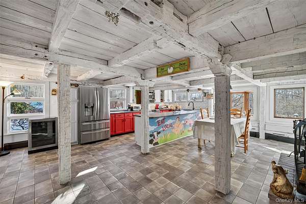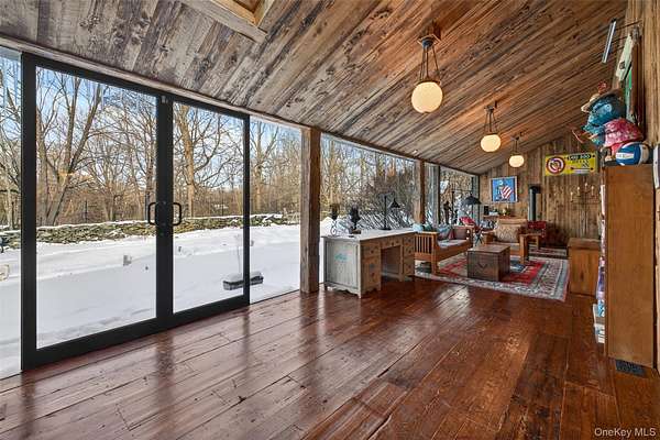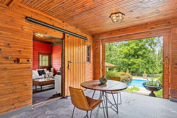 Tucked behind a quiet country approach, two meticulously restored 19th-century barns have been reimagined into a refined luxury residence and companion pool house that feel timeless in character and elevated in execution. Inside the main residence, soaring vaulted ceilings, original hand-hewn beams, and wide-plank floors establish a sense of warmth and permanence, while expansive walls of glass invite natural light and create a seamless connection to the surrounding landscape. At the heart of the home, a beautifully appointed country kitchen anchored by a wood-burning fireplace is designed for both slow mornings and elegant entertaining. A dramatic great room and adjoining music room provide generous gathering spaces, while three bedrooms offer private, hotel-level comfort for guests. Outdoors, a heated in-ground pool is set among stone terraces and anchored by a fully outfitted luxury pool house with kitchen, bedroom, and bath, ideal for hosting, unwinding, or extended stays. The setting offers exceptional privacy while remaining effortlessly connected. Located less than 75 miles from New York City and just 10 minutes from the center of Millbrook, the property delivers the best of Hudson Valley living. World-class wineries, scenic hiking trails, equestrian estates, and farm-to-table dining are moments away, creating a lifestyle defined by balance, where weekend escape meets full-time retreat. This is not a conversion. It is a destination. A rare offering where historic architecture, modern luxury, and the rhythms of country life converge, all within easy reach of the city.