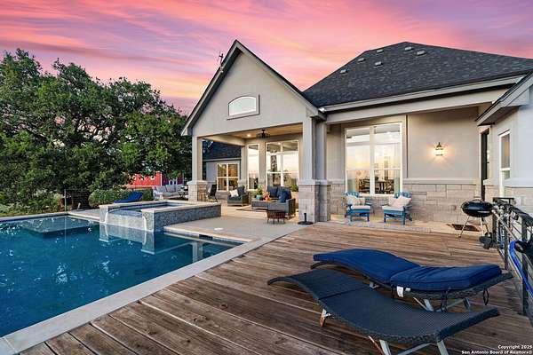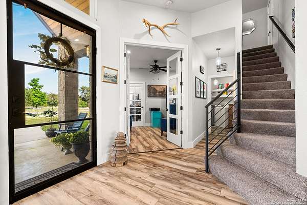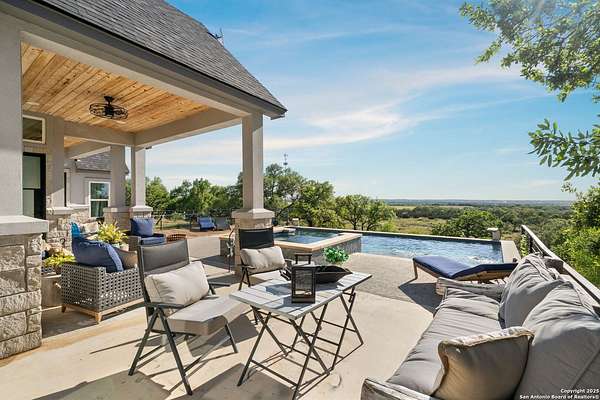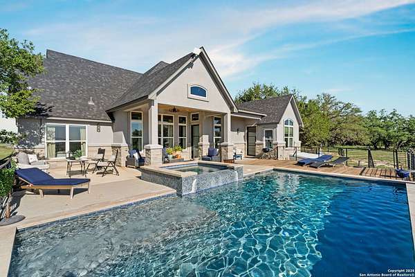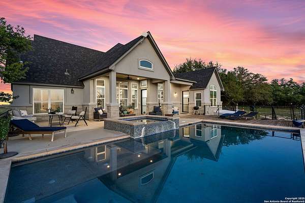 Hill Country Retreat on 25 Acres minutes from Johnson City, Fredericksburg, and local wineries. Less than an hour to both Austin and San Antonio - this 25-acre estate offers spectacular panoramic views of the Texas Hill Country. The home features 4 bedrooms, including a flexible space ideal for a guest room, game room, or home gym. An additional bathroom can easily be added upstairs. The open-concept living and kitchen area is perfect for entertaining, and the dedicated office provides a quiet space to work or create. Step outside to your private pool and hot tub, perfectly positioned to take in the sunset views. Enjoy established riding and UTV trails throughout the neighborhood, all within a gated neighborhood for added privacy and peace of mind.