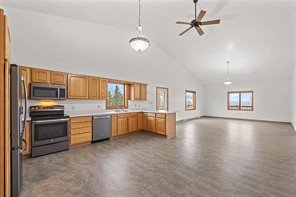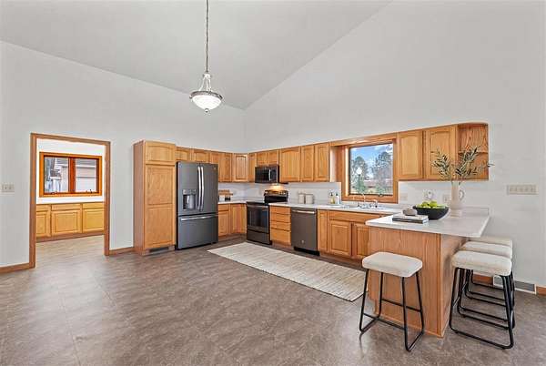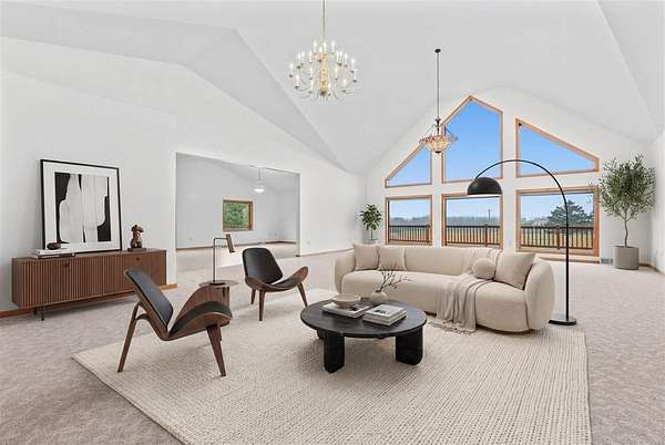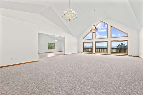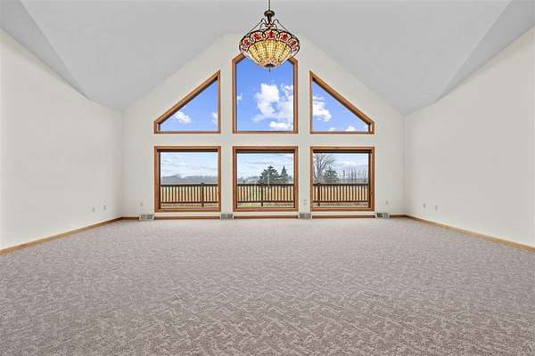 This is the acreage dream you've been waiting for in Sumner! This immaculate, custom-built home features 3+ BDRMS & 3.5 BA, perfectly situated on a peaceful 2.62 acre estate, offering unmatched space & utility. The main level captivates w/ an open-concept living area & a breathtaking 20-foot ceiling, flooded w/ natural light from soaring floor-to-ceiling windows. The oversized kitchen is a chef's delight, opening directly onto a wrap-around deck perfect for entertaining & enjoying sunrise views. Convenience is key w/ 2 main-level BDRMS, both featuring private en-suite baths, plus a main-floor powder room. The finished LL expands your living options w/ a spacious rec room, a 3rd bedroom, and a 4th non-conforming room, complemented by a vast, semi-finished space with 10-foot ceilings, ready for your custom theater or gym, & a walk out w/ patio. Exceptional utility is provided by a detached 1680 SF 4-car garage, a small hobby shed, & a basement shop, while the home's comfort is ensured by geothermal HVAC. The property's curb appeal is enhanced by beautiful natural prairie, mature plantings, handsome retaining walls, & a light-lined driveway w/ carport & parking for a dozen vehicles. Well-cared for & guaranteed to deliver peace and quiet, this is the perfect opportunity for cosmetic personalization to create your forever sanctuary!