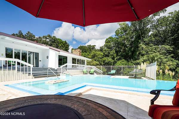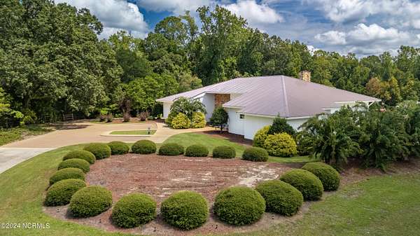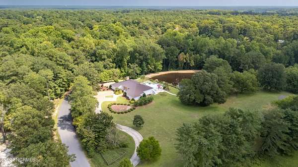 MID CENTURY MODERN HOME / 11 acres with a large stocked pond & stream. Horses allowed. This extravagant custom built home is a classic work of art that has been meticulously renovated and modernized, yet restored in keeping with the craftsmanship and artisan features originally crafted into this quality home. The original construction details can be described as classic architectural craftsmanship carried over from one of the most innovative construction eras in America. The estate is located inside the town limits, and a short walking distance through the quaint & historic town of Elizabethtown, NC. 6' x 8' hand carved entry doors, Italian slate floors, vaulted ceilings, Silestone counter tops, cedar plank siding, stainless appliances, custom cabinetry throughout, recessed lighting, two stone fireplaces, large attached two car garage, On demand hot water heater, In house vacuum system, Google NEST digital heat pump controllers, updated 200amp electrical service, Walk-up attic, Wet bar, Custom dining server cabinets, Garden tub, Custom saltwater infinity/vanishing edge pool, 2 service entry gates, 3 bay 1200 sq. ft. workshop with 200amp service. 1700 sq. ft. Horse barn/ picnic shelter with sewer, water & RV hook ups. Gazebo, Rainbird irrigation system, Metal roofing on all structures, large stocked pond, Stream, Several springs, Pecan, walnut and fruit trees. Open pasture and mature forest, Residential and commercial possibilities, Airbnb, residential development, wedding venue, campground, small farm, etc.