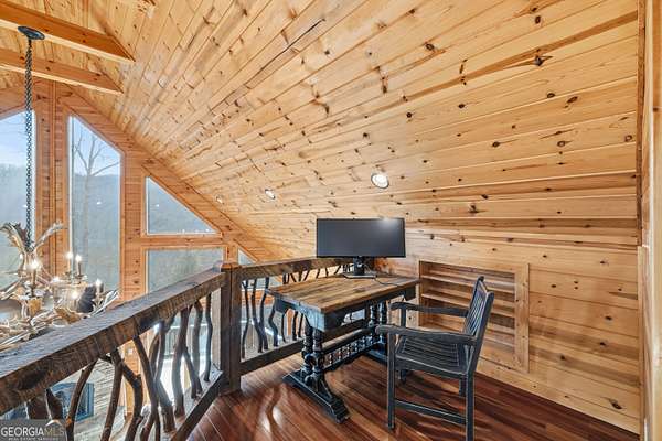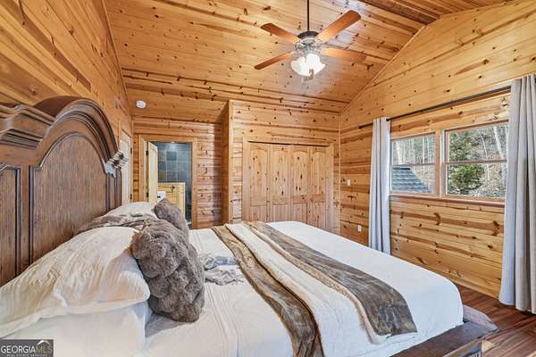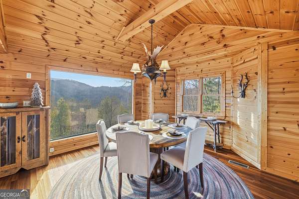 Paradise awaits-whether you seek the comfort of a luxurious mountain lodge or the thrill of outdoor adventure, this exceptional property encompasses it all. Nestled among the towering hardwoods of Rich Mountain, this mountain sanctuary offers unobstructed National Forest views and direct proximity to the serene Falls Branch Falls, creating a storybook setting just moments from your door. Located in the highly sought-after Aska Adventure Area, the home enjoys all-paved access and sits quietly in a private cul-de-sac, blending seclusion with convenience. The main living area is designed to impress, featuring soaring vaulted ceilings, tall picturesque windows, and breathtaking long-range mountain views. Three indoor gas fireplaces add warmth and ambiance throughout the home, while an outdoor wood-burning fireplace invites year-round enjoyment on the newly stained rear deck. A hot tub completes the outdoor living experience-perfect for unwinding after a day of adventure. Thoughtfully designed for versatility, the property includes a detached suite with a second kitchen and a new refrigerator-ideal for guests, multigenerational living, or a private rental opportunity. Additional highlights include a two-car garage, professionally landscaped grounds, professionally cleaned windows, and a recently installed radon mitigation system for added peace of mind. Outdoor enthusiasts will appreciate the close proximity to the Benton MacKaye Trail, Rich Mountain Wilderness and USFS land, the Toccoa River, and the beloved Toccoa Riverside Restaurant-offering endless opportunities for hiking, fishing, dining, and exploration. This rare offering seamlessly blends refined mountain living with an unmatched outdoor lifestyle, creating an exclusive retreat unlike any other in Blue Ridge.
