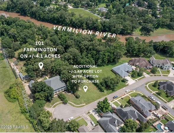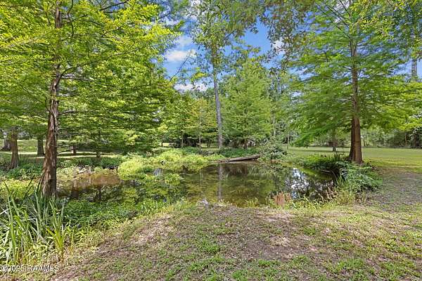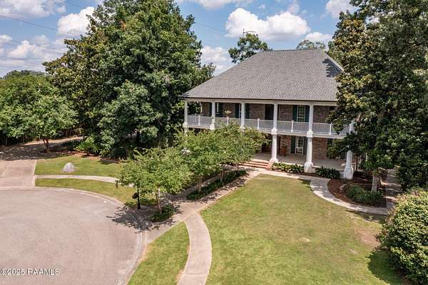 A once in a lifetime opportunity tucked away in one of Lafayette's most exclusive enclaves - approximately 4.1 breathtaking acres with river frontage, two ponds, and a timeless Southern home that feels like a private park, all just minutes away from the heart of Lafayette. This unique estate, set in the coveted Fernewood subdivision, offers the rare gift of total peace and privacy without giving up city convenience. Classic curb appeal greets you with a stately brick exterior, full-length porches, and iconic white columns that stretch across the front and back of the home. Inside, you'll find over 9,200 square feet of conditioned space spread across three levels - all connected by a residential elevator. The layout is elegant and functional, with five generously sized bedrooms (each with an en-suite bath), a formal dining room with French doors, a dedicated office, and a walk-out basement with wet bar that has hosted everything from game nights to wedding receptions. The heart of the home is the chef's kitchen, featuring custom cabinetry with tons of pullouts, granite countertops, a Sub-Zero refrigerator, Thermador gas stove, double ovens, and multiple seating areas-perfect for gathering. Throughout the home, you'll find antique pine floors reclaimed from a New Orleans warehouse, soaring ceilings (up to 22 feet), and walls of windows that fill the space with natural light. Outdoors, the beauty of the land takes center stage. You'll enjoy listening to beautiful nature sounds while picking figs and apples from your own trees, casting a line into one of the ponds, or sipping coffee while the sun rises over your acreage. With 2,700 square feet of covered porches and balconies, there's no shortage of places to sit, sip, and take in the views. This is more than just a home - it's a lifestyle that simply cannot be replicated within Lafayette city limits. Let's schedule your viewing today! Full list of amenities & floor plans available- ask your realtor