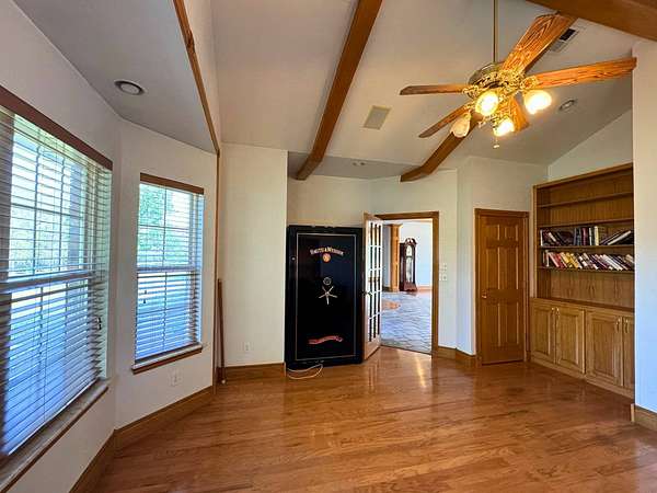 Est $3,169/moImagine living on 15.95 acres (MOL) fenced and gated. The ponds and gently rolling acreage offer fabulous vistas. Cathedral, Trayed and Wagon Wheeled ceilings can be found throughout the home. The living area above the garage is an enviable bonus. The school is within walking distance. Seller prefers to sell in As-Is condition.
