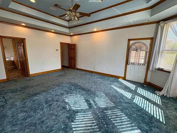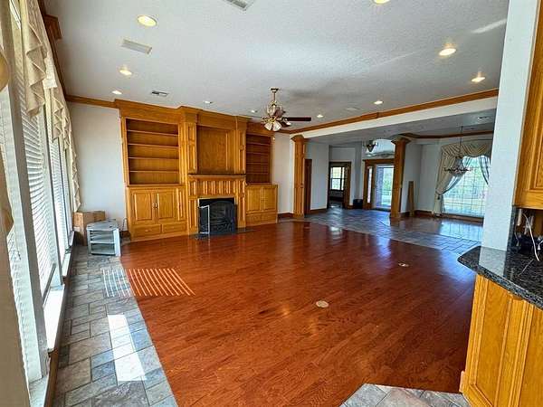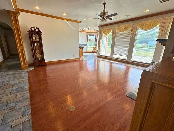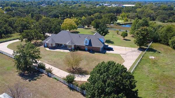 Est $3,169/moMassive estate consisting of 2 parcels, approximately 15.95 acres total. 2 ponds adorn the west side of the property. Recent improvements include new roof, 2 new AC units, new siding and window screens! Cathedral, trayed, and wagon wheel ceilings compliment the living spaces. Property features vinyl fencing and a storm shelter. The school is within walking distance.