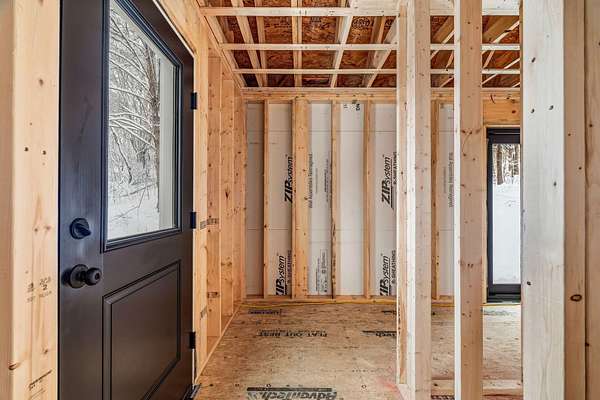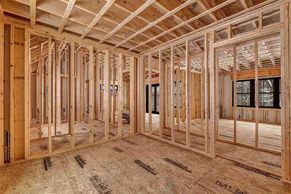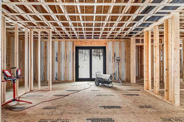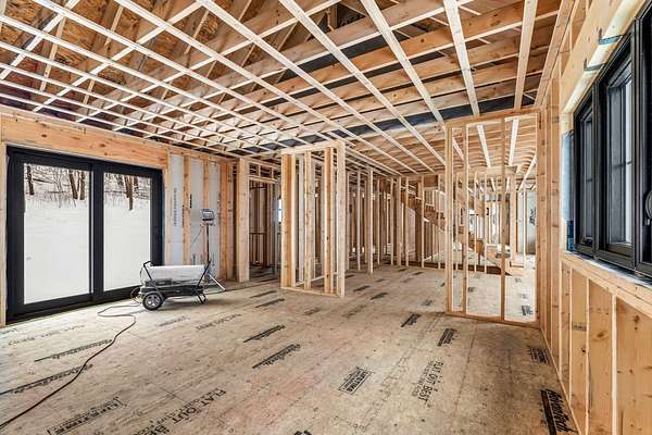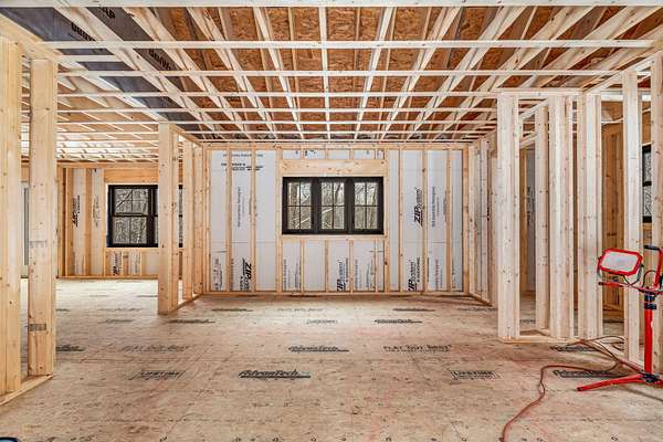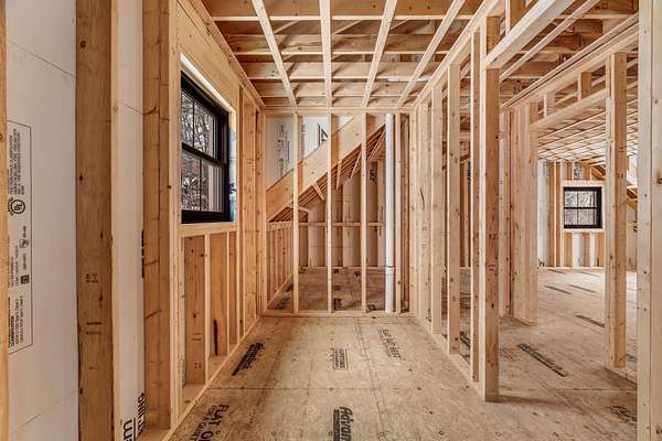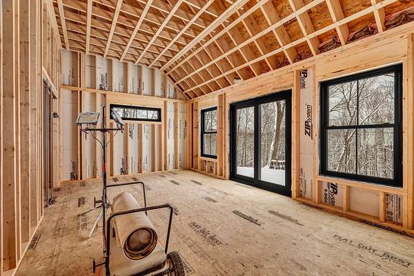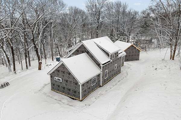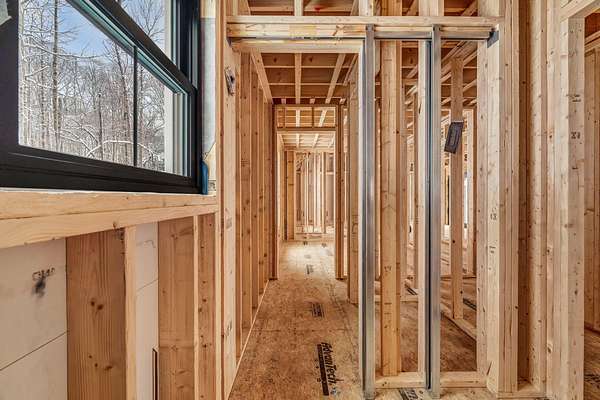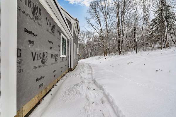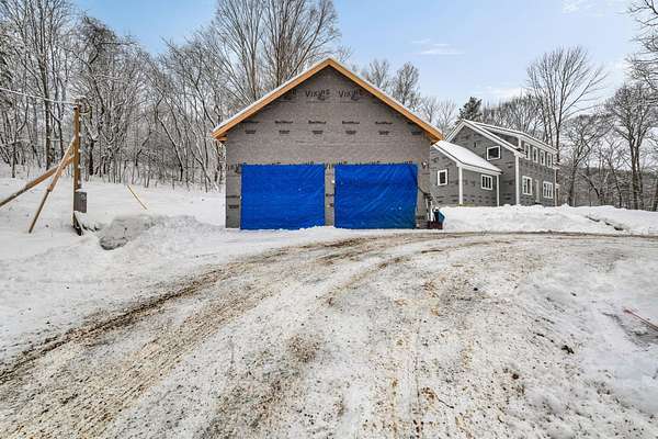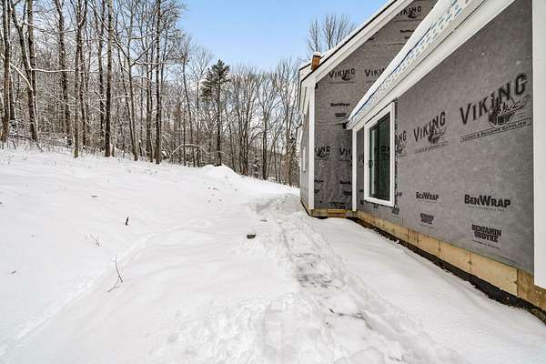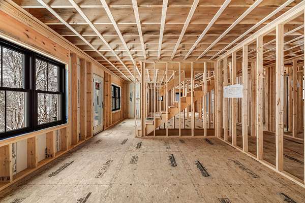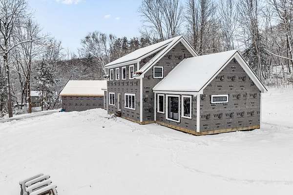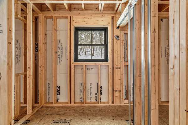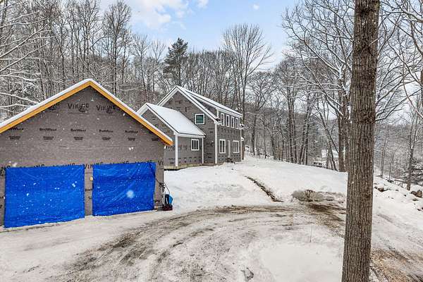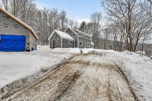 Spacious to be 4-bedroom, 3-bath New Englander with classic dormers, privately sited on over two beautifully wooded acres just minutes from Rockland and Camden. An additional separate lot with its own right-of-way offers potential for subdivision or future development, providing exceptional flexibility and long-term value. Designed with entertaining in mind, the home features a large, open kitchen with a full kitchen design already in place, including a generous center island and an oversized pantry with a window. The dining room is thoughtfully laid out for a built-in coffee bar and flows seamlessly between the kitchen and living room. The main level includes a dedicated laundry room and half bath with direct access to the shower and a first-floor guest bedroom--ideal for visitors or flexible living arrangements. The house is framed for a small mudroom, adding to everyday functionality. The primary suite is designed as a true showpiece, featuring cathedral ceilings, an oversized walk-in closet, and a spacious en-suite bath. Located at the end of the hall, the primary bedroom offers privacy and a peaceful retreat. The second floor includes two extra-large bedrooms, each with walk-in closets, and a shared, generously sized bathroom. The full basement spans the main portion of the home and is framed for a large utility room and two bonus rooms, offering excellent expansion potential. Two additional crawl spaces are located beneath the kitchen and primary suite. A detached two-car garage provides privacy from the road and complements the serene setting. Major construction milestones are complete, including framing, all windows installed, roof, well, detached garage, and all exterior trim in place--ready for siding. Finish the home to your specifications or continue with the current builder. Builder portfolio available upon request. A rare opportunity to complete a thoughtfully designed home in a private, natural setting with proximity to Midcoast amenities.