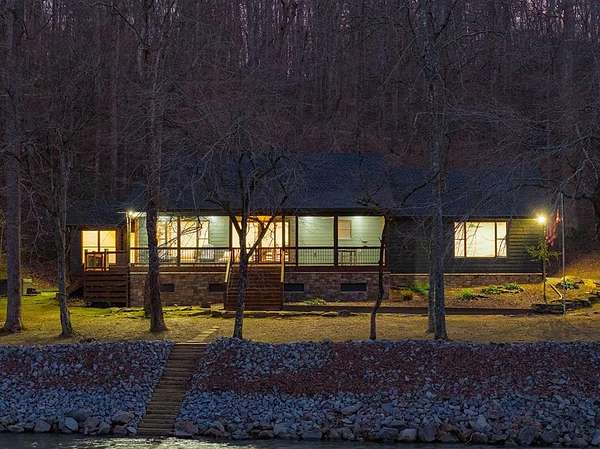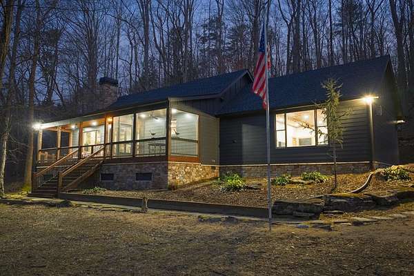 This remodeled ranch home is nestled on a private lot, offering seasonal pasture views. The property features nearly 2,000 square feet of both covered and uncovered deck space--ideal for entertaining or simply enjoying nature's beauty. Inside, the home boasts hardwood floors throughout, with tile flooring in both bathrooms. The spacious living/great room includes a gas fireplace and several areas perfect for gathering, relaxing, or hosting guests. The kitchen is equipped with stainless steel appliances and a large center island. The master bedroom is impressively sized at 20x16. The updated master bath features double vanities and a stepless shower. Additionally, there is a roomy second bedroom and a hall bath. A staircase leads to an 800-square-foot attic, 3/4 finished and ready for your final touches--offering potential for extra living space or a bedroom. Outdoors, you'll find a massive double workshop with storage, electricity, and a wood stove for heating. The home is perfectly positioned on the lot, providing maximum privacy and tranquility.