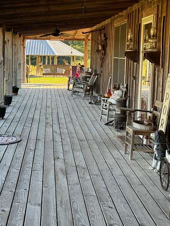 Escape to the country with this rustic farmhouse built in 2013, offering 2,160 sq. ft. of living space with 3 bedrooms and 2 full baths. Situated on 29 acres, the home features open living spaces, warm rustic finishes, and modern conveniences. Outside, you'll find a drying barn for wood, a large hay barn, and plenty of open land for livestock, gardening, or recreation. The property is fenced and ideal for cattle, horses, goats, or chickens - with wide pastures where kids and animals alike can run free. Adding to its charm and versatility, there's also a guest cottage out back, perfect for extended family, rental income, or a private retreat. This property combines the peace of rural living with functional features for a working farm or family homestead. Mature shade trees, wide country views, and private drive access complete the package. Quiet, functional, and move-in ready - ideal for a family looking for acreage with modern conveniences. Showings by appointment.