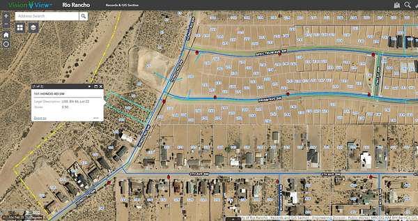 Est $350/moHalf-acre lot in Rio Rancho with city water and sewer available. Manufactured homes are allowed, offering a flexible opportunity for residential use. Convenient location with room to build or place a home in an established area.