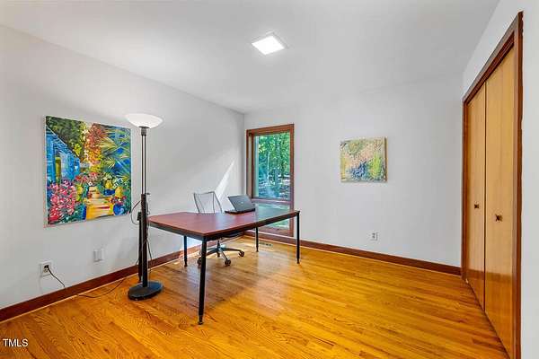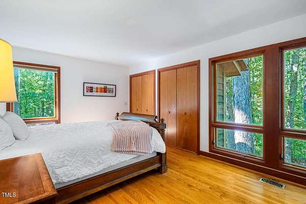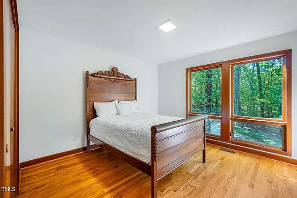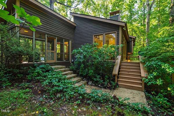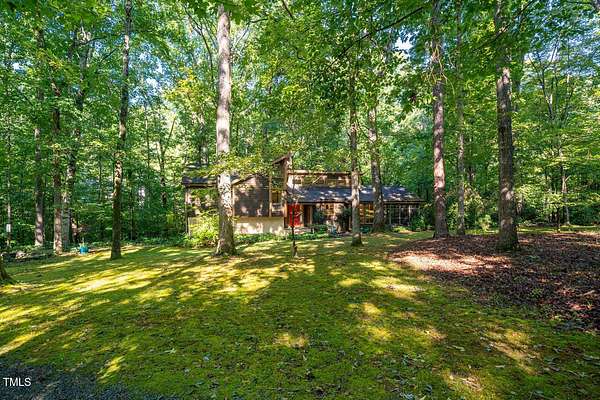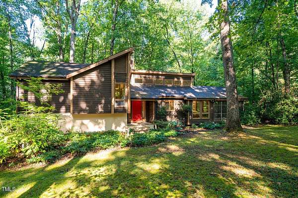 Happily ensconced on over two private acres in the heart of Chapel Hill, this striking Mid-Century Modern, Goforth home combines timeless design with thoughtful updates for today's lifestyle. Walls of glass invite natural light into expansive living spaces, highlighting clean architectural lines, warm wood accents, and open sight lines that embrace the surrounding landscape. The renovated kitchen is a chef's delight, blending sleek cabinetry, quartz countertops, and new high-end appliances with a seamless flow to dining and entertaining areas. Spa-like bathrooms have been reimagined with modern finishes, offering both style and comfort. And when we say renovated - we mean that the tags are still on the over, the sinks - this is new and untouched! With its spacious layout, serene setting, and the perfect balance of classic character and contemporary upgrades, this home is a rare opportunity to enjoy Mid-Century living in Chapel Hill. Garage, screened porch and open air deck. Award winning East Chapel Hill HS and great Chapel Hill Schools - easy access to UNC, Duke, RTP. Neighborhood amenities include pool, tennis, pickle ball and trails. Year round activities in the Clubhouse. Go for more information on the amenities - HOA is voluntary and club is an additional fee.