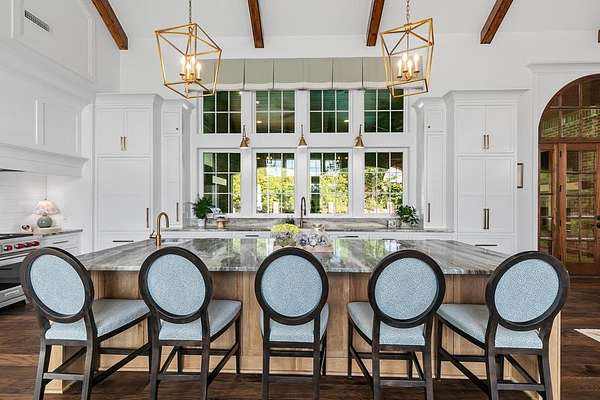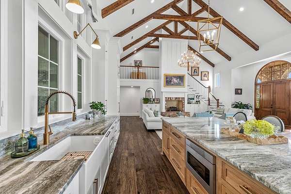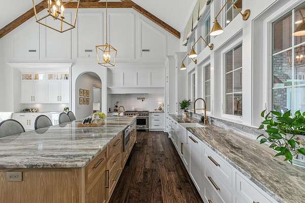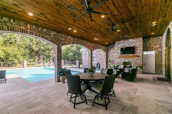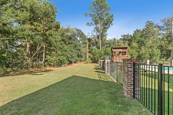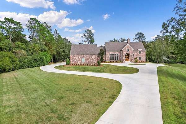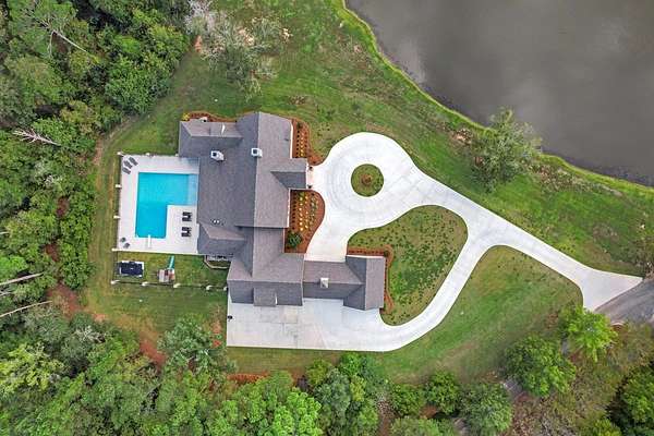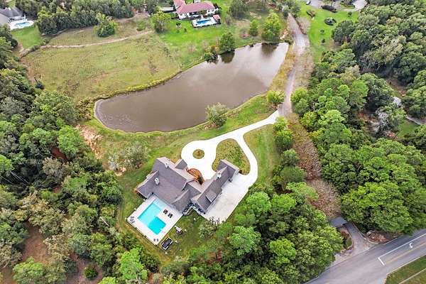 This fully custom, one-of-a-kind residence combines refined craftsmanship with modern luxury in one of Dothan's most exclusive gated communities. Perfectly positioned on a 2.06-acre pond-facing lot, this 5,523 sq. ft. home delivers both privacy and stunning water views. Inside, soaring 25-foot ceilings in the main living, kitchen and dining room area, where natural light floods through expansive windows and highlights the home's custom details throughout. The chef's kitchen is designed for entertaining! With five bedrooms, five full bathrooms, and three half baths, the layout provides both space and flexibility, including three bedrooms on the main level and two upstairs, plus a bonus room located above the garage which includes a kitchenette, full bathroom, and built-in bunk beds. Outdoor living is exceptional, featuring a heated saltwater pool, outdoor kitchen, dining, living room, and a dedicated pool bathroom. The fourth garage bay is heated and cooled, currently used as a shop with its own bathroom, a perfect retreat or workspace. Additional upgrades include a whole-home generator, high-end finishes throughout, and meticulous attention to design and functionality. Every detail of this property has been carefully considered to deliver an unmatched living experience in a secure, serene setting.