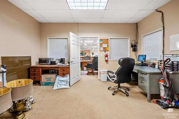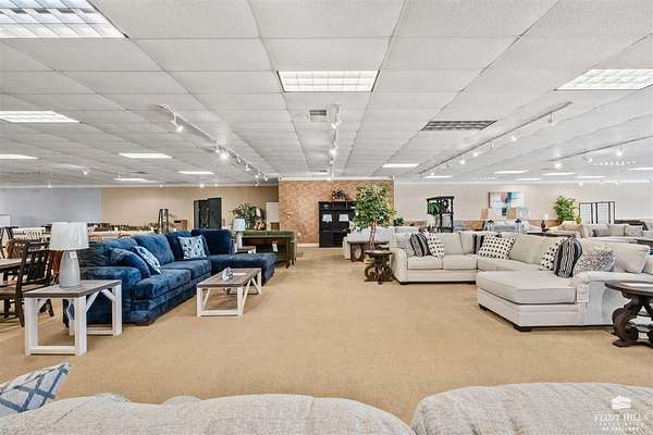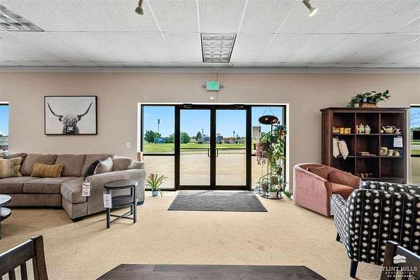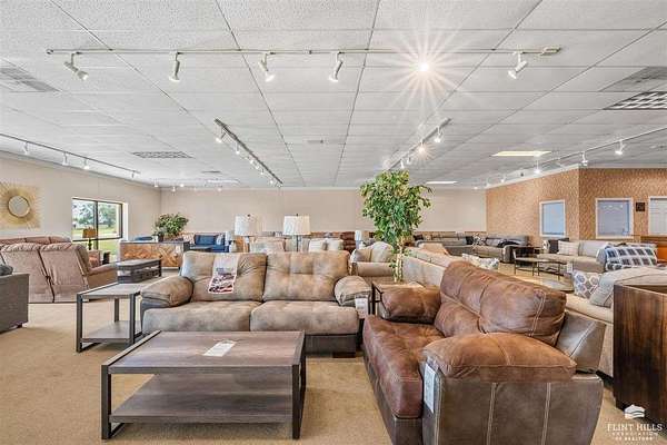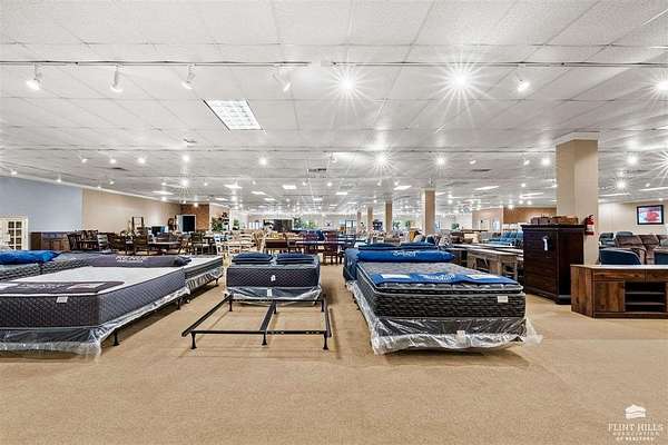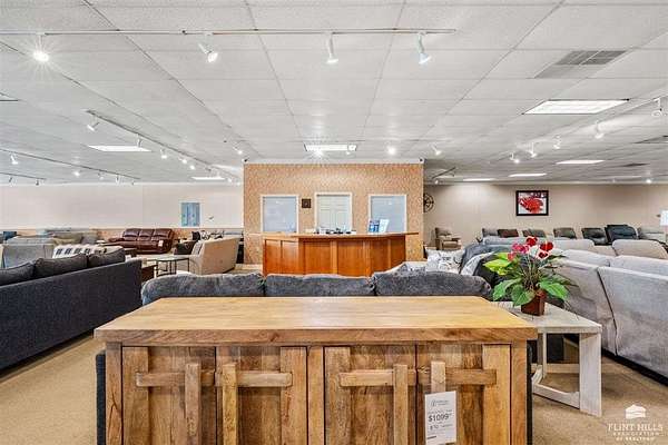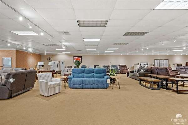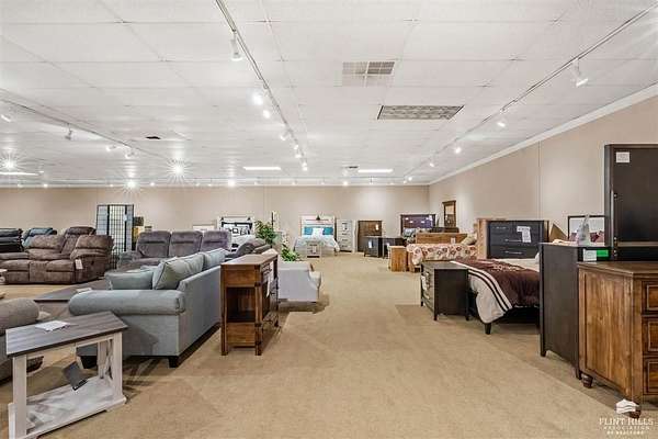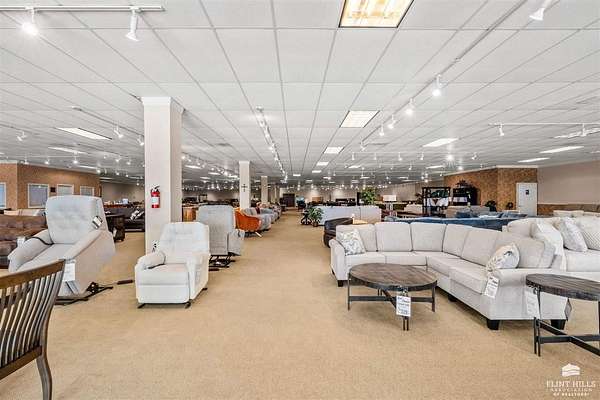 Location, Location, Location! Another fine commercial listing from Trish at Mathis Lueker Real Estate, call. This single story, standalone commercial building in Abilene, Kansas is very well located, just North of Exit 275 on Interstate 70. Beautifully constructed in 2004, the floor plan consists of approximately 20,000 SF including a good sized showroom and a warehouse section. 2 bathrooms. The building is highly visible from I-70 and sits on a desirable 2.5 acre corner lot next to Holiday Inn Express & Suites and the iconic Brookville Hotel Restaurant. Plentiful parking. Currently and for many years prior this location has operated as a successful furniture sales business. View by appointment only.