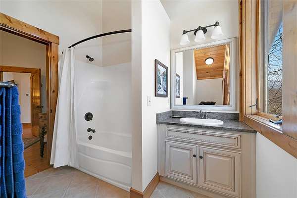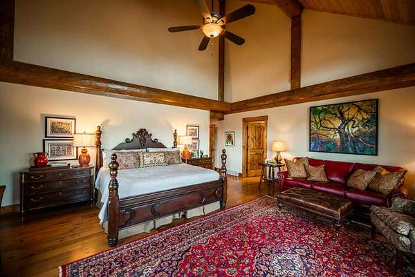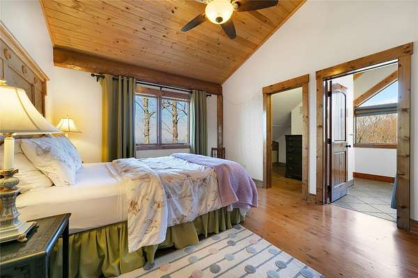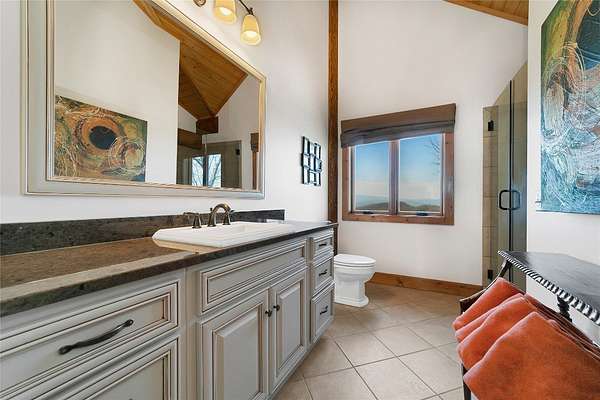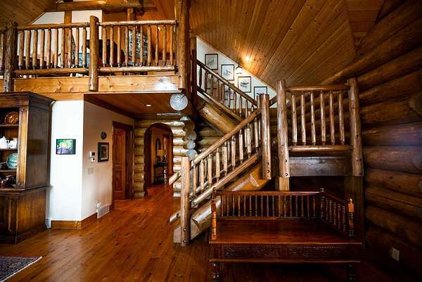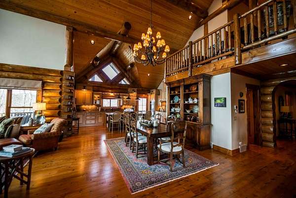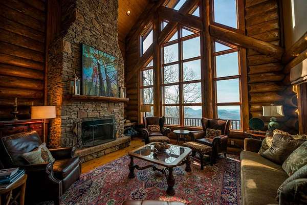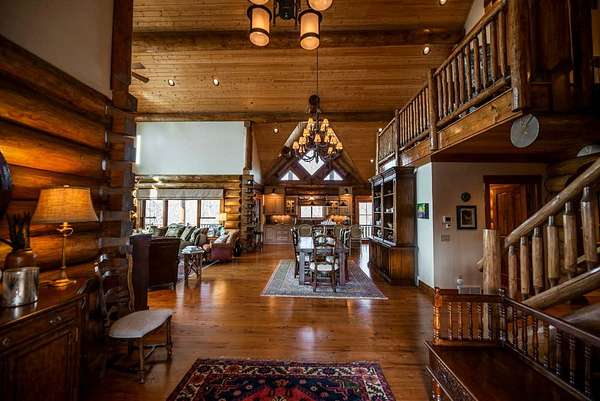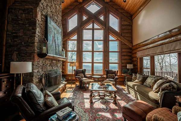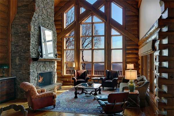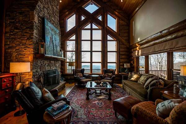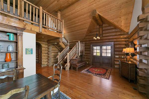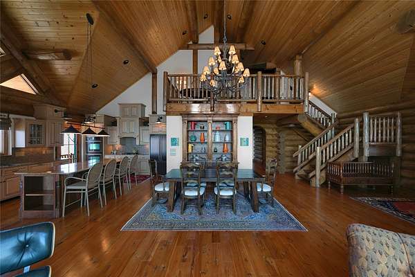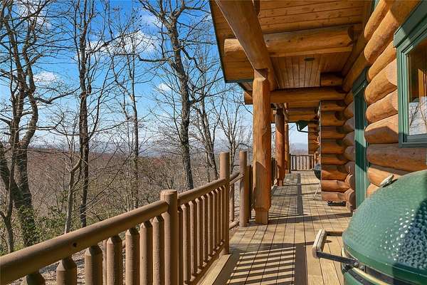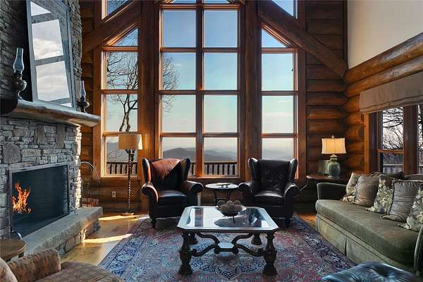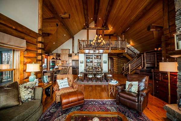 Massive Canadian Douglas Fir logs frame the expansive glass wall in this lodge-style masterpiece atop its own mountain with 360 degree views. Using the highest quality of materials and craftsmanship, no expense was spared to create this durable and timeless log home, complete with Ipe decking, reclaimed Cypress flooring, SageGlass window tinting technology in Marvin windows, and a Rinnai tankless water heater. The massive volume of the great room, matching indoor and outdoor wood burning fireplaces (with propane starter), expansive decks, and a covered kitchen porch all encourage the gathering of friends and family. And with 4 en suite bedrooms plus a bunkroom, there is room for everyone. Enjoy the luxurious primary bedroom suite, chef's kitchen, and oversized 2 car garage. You would fall in love with this home anywhere, but the stunning long-range mountain and lake views are what make it a true one-of-a-kind opportunity. 3D Tour: