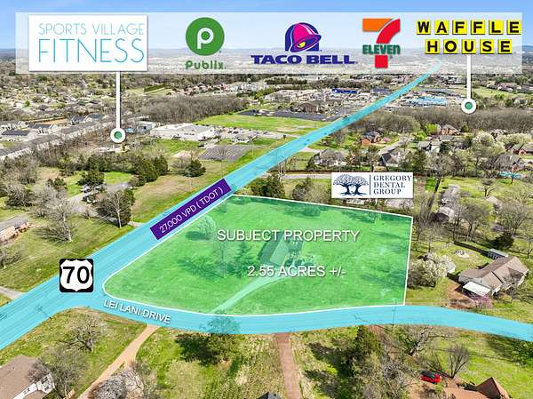 PRIME COMMERCIAL POTENTIAL GROUND LEASE OPPORTUNITY at 101 Lei Lani Dr in Lebanon, Tennessee. This exceptional 2.55± acre corner parcel offers outstanding visibility and accessibility along a high-traffic corridor with approximately 27,000 vehicles per day per TDOT, making it an ideal site within a designated commercial neighborhood zoning area. The property features a well-maintained 2,300 sq ft single-family residence built circa 1978 with 3 bedrooms and 3 baths, providing existing infrastructure including utilities, slab foundation, and site improvements that allow for immediate use or streamlined transition into long-term ground lease development without starting from raw land. Strategically located across from Sports Village Fitness and adjacent to Gregory Dental Group, the site sits within a thriving commercial corridor supported by strong daily consumer traffic and a diverse mix of established retailers and services. Within a 5-mile radius are major national and regional brands including Starbucks, Publix, Taco Bell, 7-Eleven, Waffle House, Lowe’s, Dollar Tree, T.J. Maxx, HomeGoods, and Aubrey’s, reinforcing the area’s proven retail demand and long-term viability. This ground lease presents a compelling opportunity for developers, investors, and businesses seeking high visibility and accessibility in one of Lebanon’s most active growth corridors. Existing improvements add immediate value by reducing development timelines and upfront costs. Lease terms, including rate, are negotiable based on use and tenant requirements. Package deal—Incentives available for tenants securing all three sites (MLS No. 3156214, 3156215, and 3156216). Do not disturb tenants. Property is not for sale.