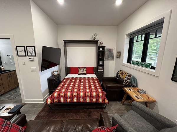 Live in this amazing cabin while you build your dream home on 1.91 acres just a few minutes from downtown Whitefish! It offers so many amenities and great details, such as a beautiful open layout, custom kitchen cabinets, granite countertops, tile shower, high-end LVT flooring, radiant floor heat, an additional mini-split unit with A/C, on-demand hot water, 10' ceilings, a lovely studio bedroom, plus a wonderful murphy bed for your favorite guests, and large windows to let the sunshine in. Enjoy a covered front porch, underground utilities, an owned and underground propane tank, ample parking with RV electrical plug in, water hydrant and septic dump. Expanding the home is possible, as the septic system is permitted and built for 6 bedrooms! Potential for short term rental with approval from State of Montana. With gorgeous fencing and a serene wooded view, you have an incredible home and property that is all you could wish for. The Whitefish Trail and Spencer Bike Trail systems abounds in the area, allowing for daily hiking and biking within close proximity to the home. Skyle, Beaver and Murray Lakes offer a chance to paddle to your heart's content within a few minutes drive, and the yummy restaurants of downtown Whitefish are minutes away. A true gem, so make. your appointment to see it today!