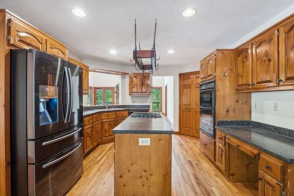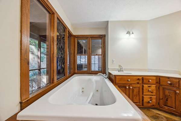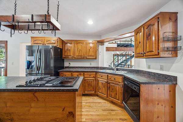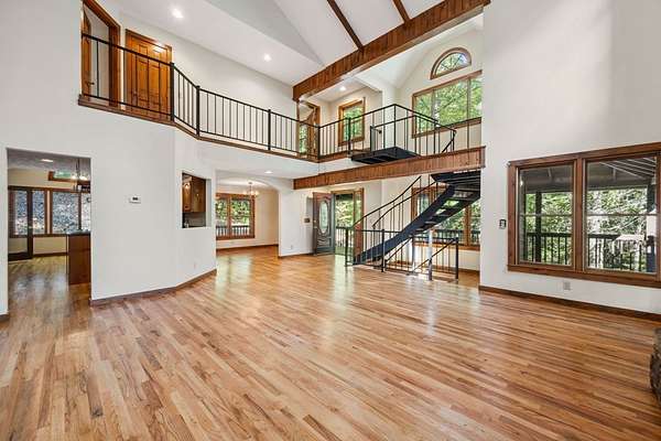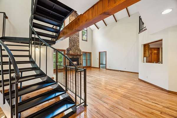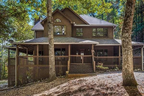 This striking mountain home lives much larger than it appears, beginning with a dramatic living room featuring cathedral ceilings, exposed beams, towering second-story windows that pour in natural light, deck access with screened-in porch, and a stunning two-story stacked-stone fireplace. A custom iron staircase leads to the loft above, which overlooks the main living area and adds both character and function. The spacious kitchen features an island, a built-in desk, a pantry, and an abundance of cabinetry, with easy flow to the separate dining room and main-level spaces. The primary suite sits on the main floor and features a spacious bath with a two-person jetted tub, stone flooring, a dual vanity with a dedicated makeup station, and plenty of storage. Upstairs, 2 additional bedrooms and a Jack & Jill full bath provide comfortable accommodations for guests or family. A whole-house generator adds peace of mind, and the full unfinished walkout basement delivers exceptional storage, workshop potential, or future expansion possibilities, featuring built-in shelves, a bench, a partially finished bathroom, and flexible space ideal for a recreation room or additional storage. Located just minutes from Blue Ridge, McCaysville, the Toccoa River, and miles of mountain recreation, this home offers a peaceful retreat with convenience to everything the area has to offer. Schedule your private showing today and experience the space, comfort, and charm for yourself!