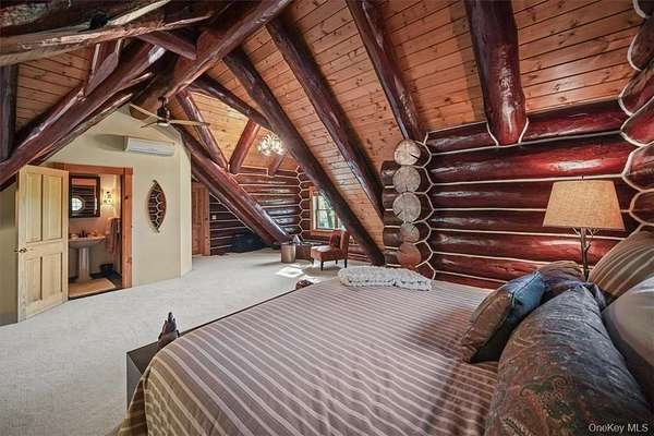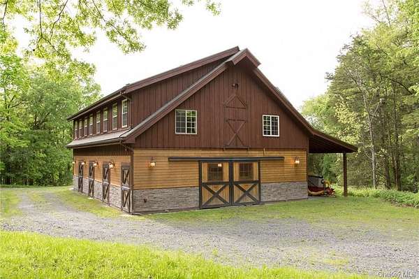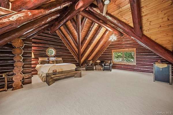 "Sunset Lodge," carefully curated and impeccibly maintained, is available for only the third time. This once in a lifetime estate comprises 38 acres, yet is only 7 minutes from Metro North NJ Transit. Exquisite main home, two ponds, 20 acres fenced (+10 wooded acres), a six stall horse barn with apartment, spectacular warm weather entertaining area with stunning 18 x 65 foot infinity pool, 8 person in-ground jacuzzi, full kitchen and much more are offered. The many recent improvements include new cedar roof, all logs refurbished inside and out and resurfaced tennis court. This extraordinary estate was built and maintained by Montana builders/craftsman lending to its authenticity. From the newly rebuilt private entrance bridge to the crunch of the gravel driveway to the bold log construction and the soaring ceilings and vistas, you have arrived. Explore the many farmer's markets, wineries, antiquing and fine dining in the Hudson Valley. For the investor, 2 acre minimum. Additional Information: Amenities:Guest Quarters,Stall Shower,Storage,Tennis,ParkingFeatures:2 Car Attached,
