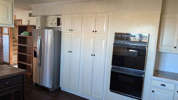 Country Living at its finest! This is beautiful home is on 3.2 acres. As you enter thru the front door, this home is very inviting with so much space available. This home has 4 bedrooms, and 2 1/2 bathrooms. The kitchen was updated with all new cabinets and countertops along with new windows throughout all within the last 10-15 years. The kitchen is an open concept with an attached bar eating area. The den features a walk out patio and wood burning stove. Just off the laundry room is the 1/2 bath. The living room is spacious and also has a fireplace. The built in storage in this beauty is ample. The master bedroom has a walkout deck attached to sit & drink your coffee and watch the sun rise each morning. The walk-in closet in the master bathroom is quite large. Just off the master bedroom is a "bonus room" and the possibilities are endless what you could use this area for... The attic area is very functionable for added storage. The 2-car attached garage is where you will find the unfinished basement. This home has a lot of Kiowa history, with the bricks coming from the old Kiowa High School.There are so many cool things about this home too numerous to mention. Come see if for yourself!