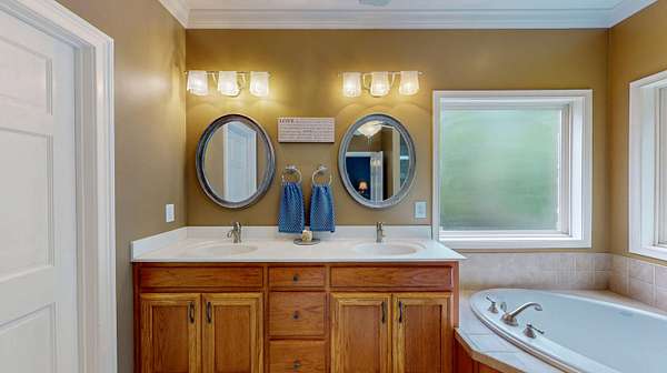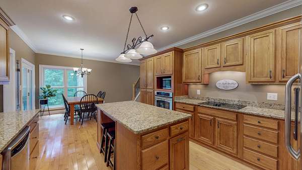 A rare opportunity to own a stunning two story home, with an extra 2000square feet of unfinished basement, in the prestigious Amherst Estates neighborhood. The main level showcases a thoughtful floor plan designed perfectly to incorporate both the feeling of an open floor plan while keeping the warmth and functionality of each space including the foyer to welcome family and friends, an office, the formal dining room, and an enormous living space accented by ample natural light and a fireplace. The kitchen is a chef's dream complete with a breakfast area, plenty of cabinetry, enough counter space to prepare elaborate meals, plus an island to gather around and enjoy a quick snack. The kitchen opens to the covered porch that is ideal for bar-b-ques, reading a book, or watching the wildlife peacefully scamper around the 2.94 acres. The owner's suite is also on the main level and boasts Plantation blinds, a walk in closet, double vanities, soaking tub, and a walk in shower too! Other features on the main level include a three car garage plus additional parking, six inch gutters, a designated mudroom, laundry room with a rinsing sink, and a side entrance for package deliveries. Upstairs offers four oversized bedrooms, one of which could be used as a massive bonus room. Furthermore, one bedroom has a private en suite that is ideal for a second owner's suite or out of town guests, with attic access perfect for storing your seasonal decor and more! The unfinished basement is the perfect place for any hobby lover, home gym, workshop and storage galore! It has direct access to a covered porch and back yard. There is also a garage door perfect for lawn equipment or a boat! In addition, it is plumbed for a bath if expansion is in your future. In order to completely appreciate the many details throughout this home, call today to make an appointment!