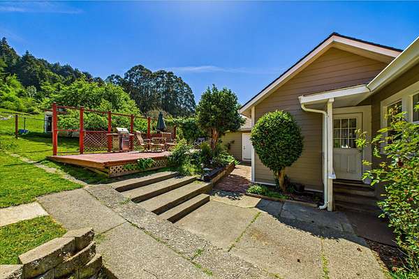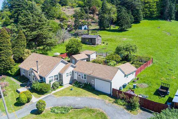 Est $3,020/moEquestrian friendly property in Rio Dell. Nearly five acres with barn and outbuildings, fencing and cross fencing, attached garage, room for your RV and all your outdoor needs. Inside you'll find a well maintained three bedroom, 2 bathroom home with an added bonus room, new roof, all updated dual pane windows while keeping the craftsmanship of the early 1900's.