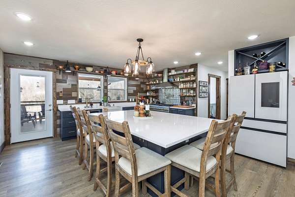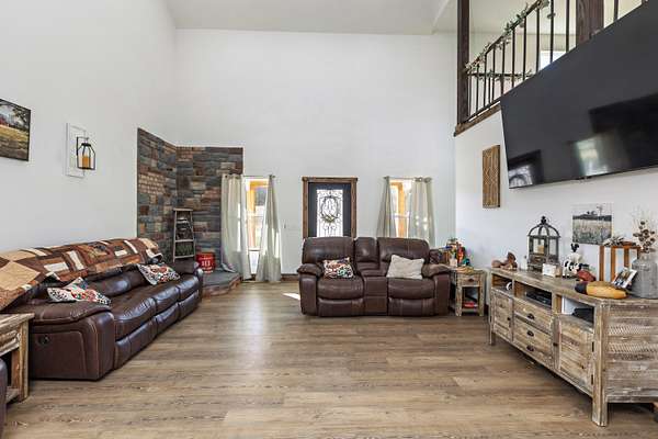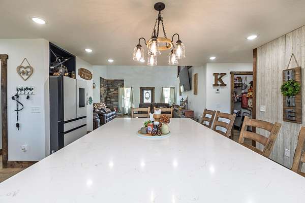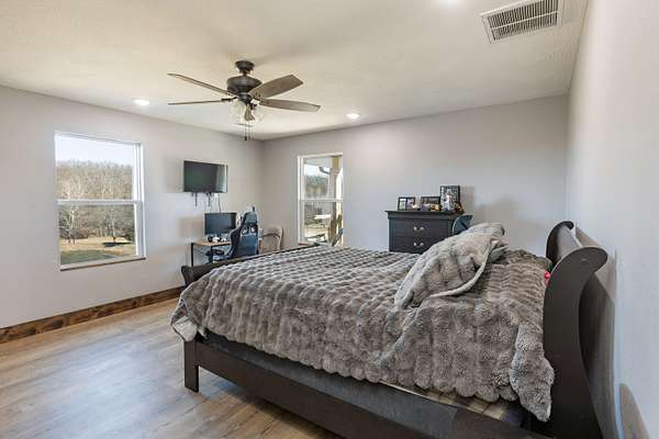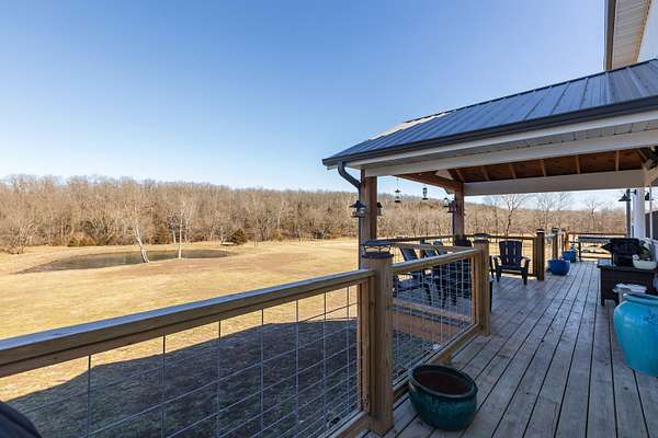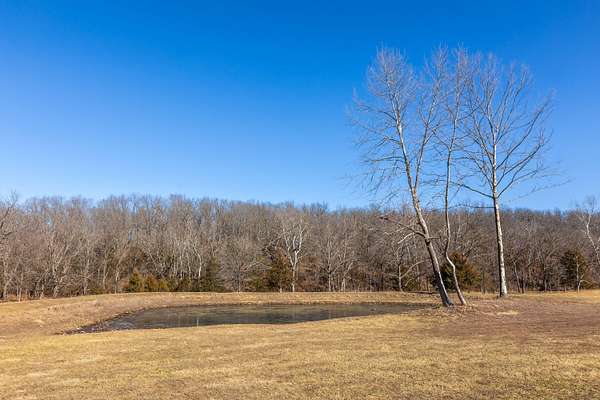 Rare offering! MARSHFIELD SCHOOL DIST. This One-of-a-kind estate is situated on 30ac in a convenient location, minutes from the Greene Co line and just between West Hwy 38 and Hwy 125 in Webster Co, Missouri. Land is 60% hardwoods and cover for wildlife, with a wet-weather creek running diagonally & providing a great travel corridor; while the remainder is open. The home is a custom-built showplace featuring 3,770 sq.ft. of quality living space (2x6 construction), 5 bedrooms, 3.5 bathrooms, two masters on the main, two living areas, a breathtaking kitchen with a view, a partially covered back deck overlooking the beautiful pond. Upon entry, you're welcomed by a neutral color palette, beautiful Cali Luxury Vinyl Plank Flooring in Alderwood, vaulted ceiling with plenty of recessed lighting, gorgeous woodwork & custom welded tree bark railing that will have you from, hello... The main floor features an inviting living area with a pretty stone hearth, perfect for your future pellet, gas or wood burning stove, two Master Bedrooms with luxury tile showers, an oversized laundry room, half bath and the most wonderful pantry you've ever seen! The owners have thought of everything and placed an outlet on both walls in the LR so you can place your tv on either side. The spacious kitchen/dining area is made for entertaining and features Quartz countertops, gorgeous cabinetry adorned with gold hardware, a ZLINE Dual Fuel Range with gas burners and electric oven, a pot-filler faucet, Samsung Fridge, undermount sink, a large island with plenty of storage and outlets, too! All kitchen appliances stay! The pantry is just breathtaking, offering ample cabinetry with quartz top, outlets galore, upper shelving, lazy susan and a Hisense beverage cooler. The partially covered back deck is the perfect space to take in the breathtaking views of the property! You'll love unwinding back here while breathing in the fresh air that only living in the Ozarks can provide!