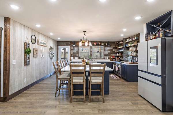 - Commercial Grade, Dishwasher, Disposal, Free-Standing Propane Oven, Instant Hot Water, Microwave, Pot Filler, Refrigerator, Tankless Water Heater