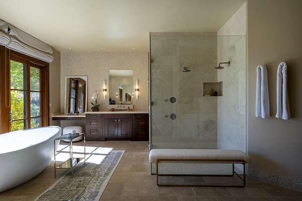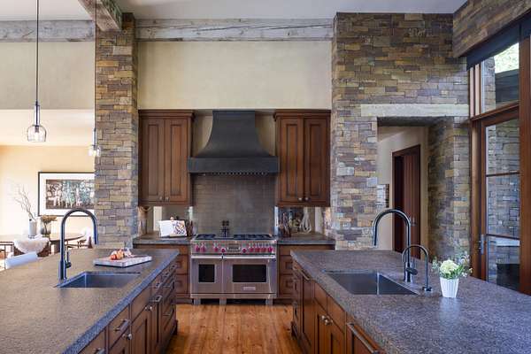 - Air Conditioning, Alarm System, High Ceilings, Main Floor Primary Bedroom, Multiple Fireplaces, Window Coverings, Wood Flooring
