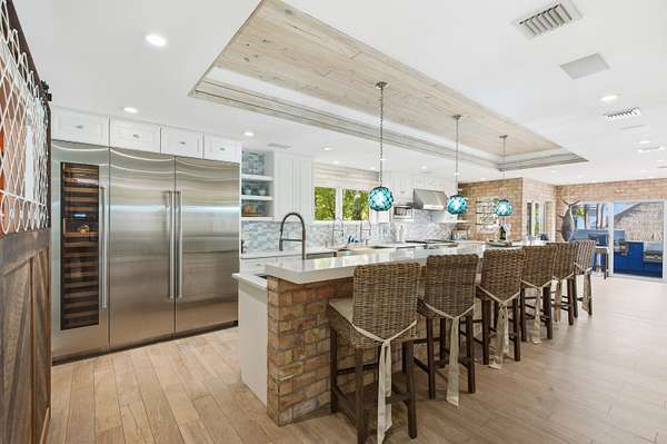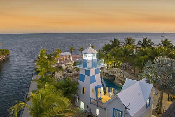 Welcome to the iconic Key Largo Lighthouse, a one-of-a-kind oceanfront landmark set on 1.6 acres of lushly landscaped tropical paradise in Key Largo. With over 300 feet of seawalled waterfront, this private compound delivers an unmatched resort-style lifestyle in the Florida Keys. Surrounded by mature palms, the property offers an extraordinary array of amenities, including a private boat basin, pickleball court, working lighthouse, and a spectacular water-park-style infinity pool complete with a lazy river, grotto, hot tub, waterslide, and multiple cascading waterfalls. Designed for grand-scale entertaining or quality family time, the estate features three main buildings with accommodations for up to 20 guests. The main residence showcases a stunning great-room layout anchored by a chef's kitchen with a Wolf gas range, Sub-Zero refrigerator and six under-counter refrigerated drawers, full-size wine fridge, expansive pantry, and an oversized island ideal for gatherings. Additional living spaces include two separate units, each with full kitchens and bedrooms, along with three detached guest bedrooms with cabana baths, offering exceptional privacy and flexibility. Throughout the grounds, Old Chicago brick walkways, seven tiki huts, and thoughtfully designed lounging areas invite relaxation at every turn. Enjoy breathtaking ocean sunrises from the point and entertain under the cabana bar overlooking Pennekamp National Park, the Atlantic Ocean, and your private, secure boat basin--equipped with a boat lift, floating jet-ski lift, and kayak/paddleboard launch. The property is fully outfitted with impact windows and doors, a metal roof, and a standby generator capable of powering the entire estate, providing peace of mind year-round. This rare and irreplaceable oceanfront compound is the ultimate setting for unforgettable entertaining and luxurious island living. Simply too many impeccable details to capture--come see it in person and schedule your private showing today!