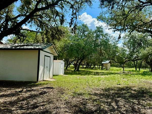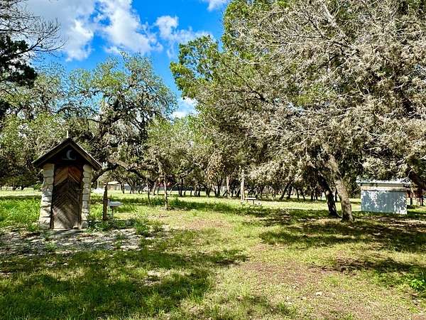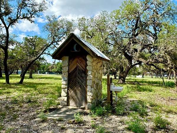 This beautiful, tree studded 2.16 acres is located in desirable Twin Forks. Located a couple of miles east of the popular tourist town of Leakey, you will have access to over 35 acres of common area located along the banks of the crystal, clear Frio River. No need to feel crowded at the river, find your own special spot with deep water, shallow water or tumbling rapids underneath towering Cypress trees! The acreage is exceptional with many large Oaks scattered about, several RV hookups, two sheds on concrete pads for storage, a circular drive and a unique rocked outhouse. There is a meter for central water that is ready to go, electricity and sewer hookup. The acreage fronts two roads, enabling many possibilities when positioning a homesite. Not ready to build yet? You may put an RV on it and leave it there for camping, as long as all utilities are hooked up.