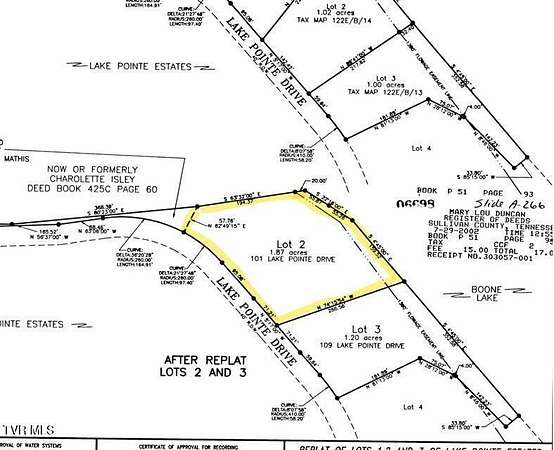 Boone Lake Waterfront Lot: Presenting a stunning 1.87-acre waterfront lot in the highly sought-after Lake Pointe Estates on Boone Lake. Nestled on a secluded cove, this property offers both privacy and scenic views, making it the ideal location for your custom-built dream home. Enjoy easy access to local amenities and attractions throughout the Tri-Cities region, perfect for seasonal retreats or comfortable year-round living. Utilities including electric and water are conveniently available at the road, and a completed survey provides peace of mind for prospective buyers. Don't miss this rare opportunity to own premium lakefront property in a prestigious neighborhood. (Buyers & buyers agents to confirm all information)