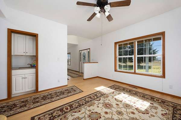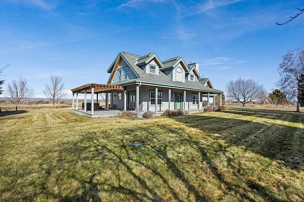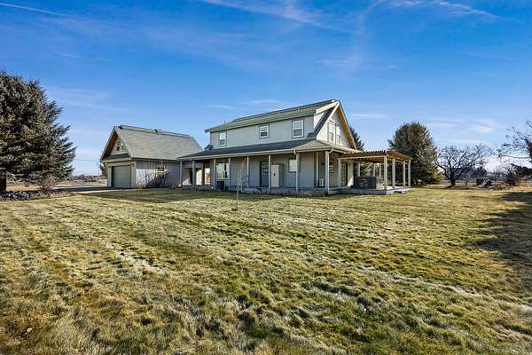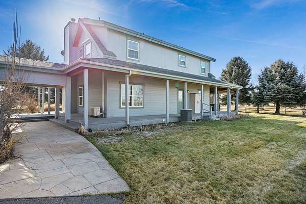 Set on just under 5 acres with panoramic views, this well-maintained Shoshone property offers privacy, space, and versatility. Features include a 6-bedroom, 4.5-bath home, with detached garage, mature landscaping, orchard, gardens, full irrigation, fenced-ready areas, wraparound porch, hot tub and koi pond. Includes an apartment above the garage and is close to river access, trails, parks, and local shops.